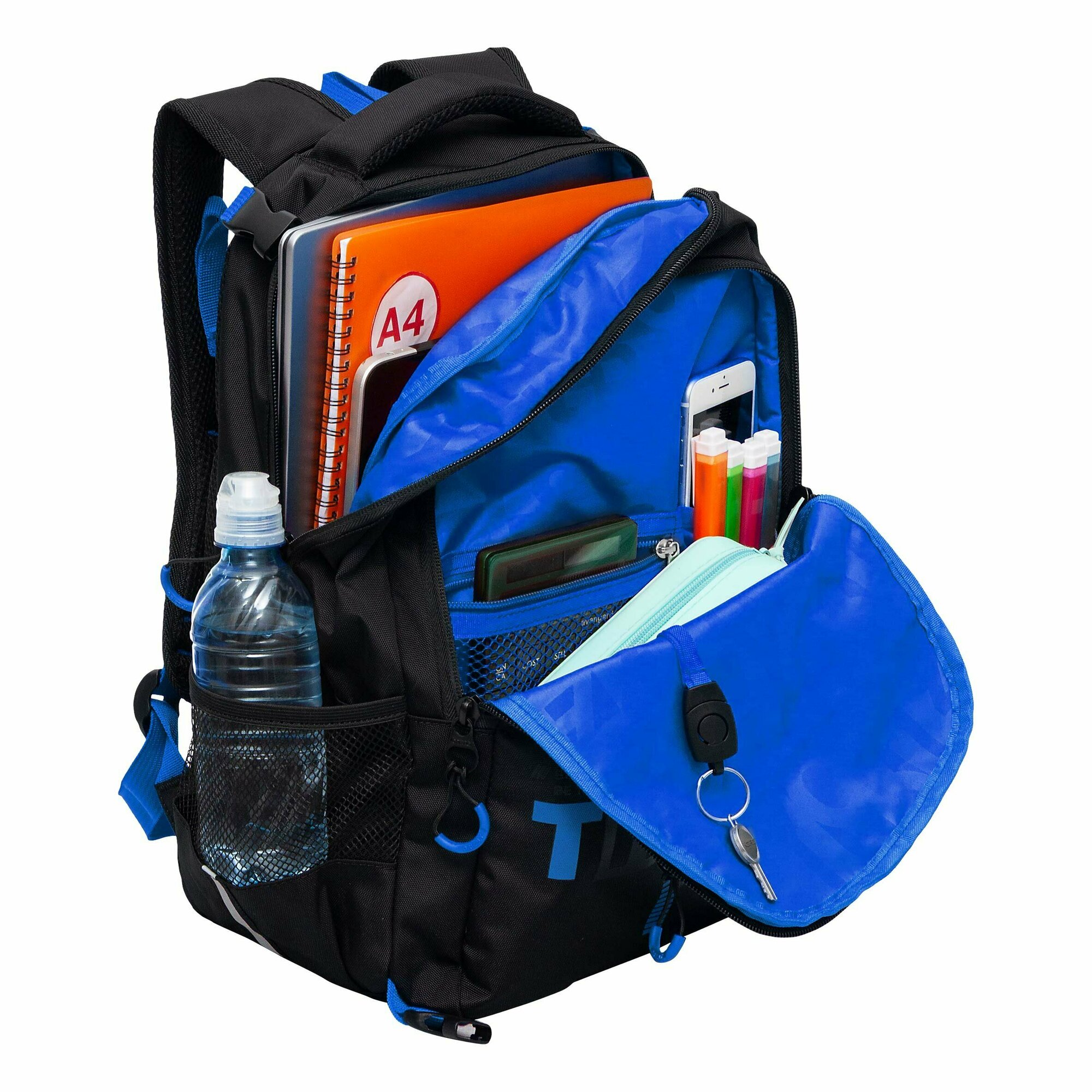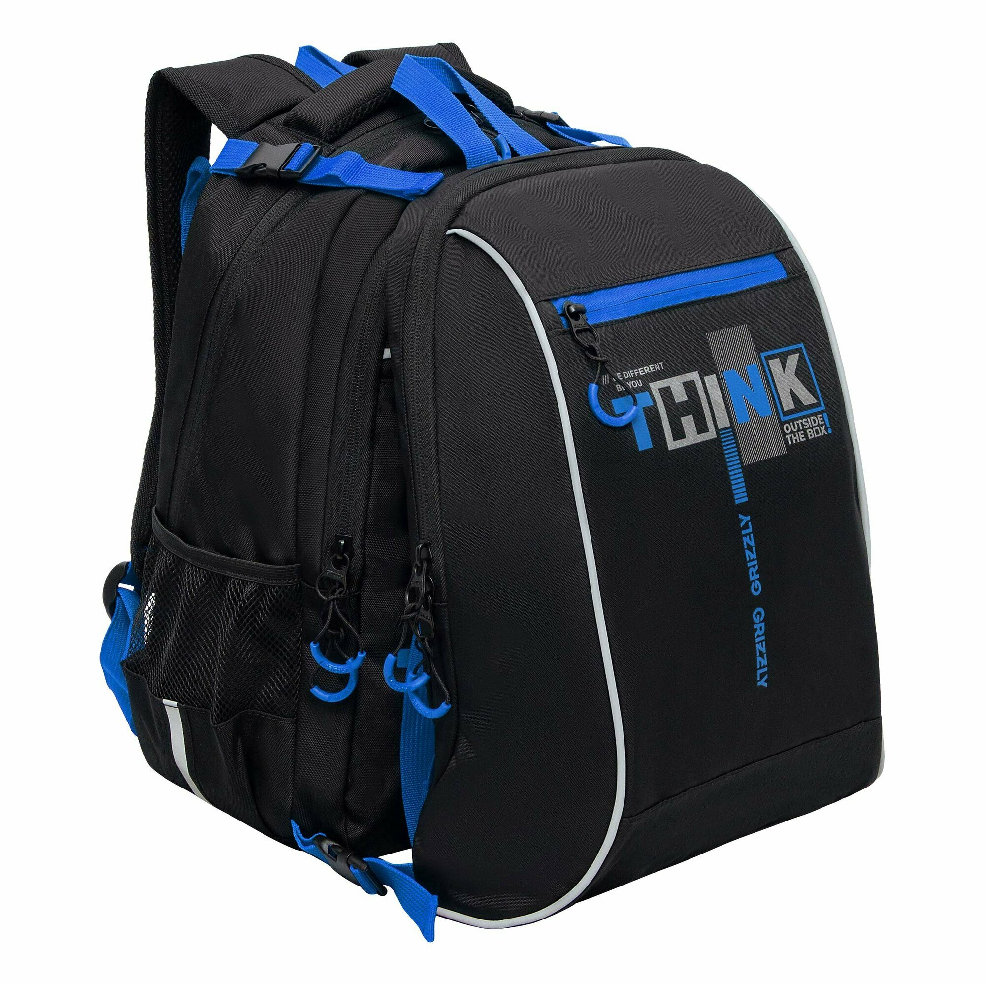 Рюкзак школьный GRIZZLY RB-458-1 в комплекте с мешком для обуви или формы, с карманом для ноутбука 13", для мальчика, черный-небесный