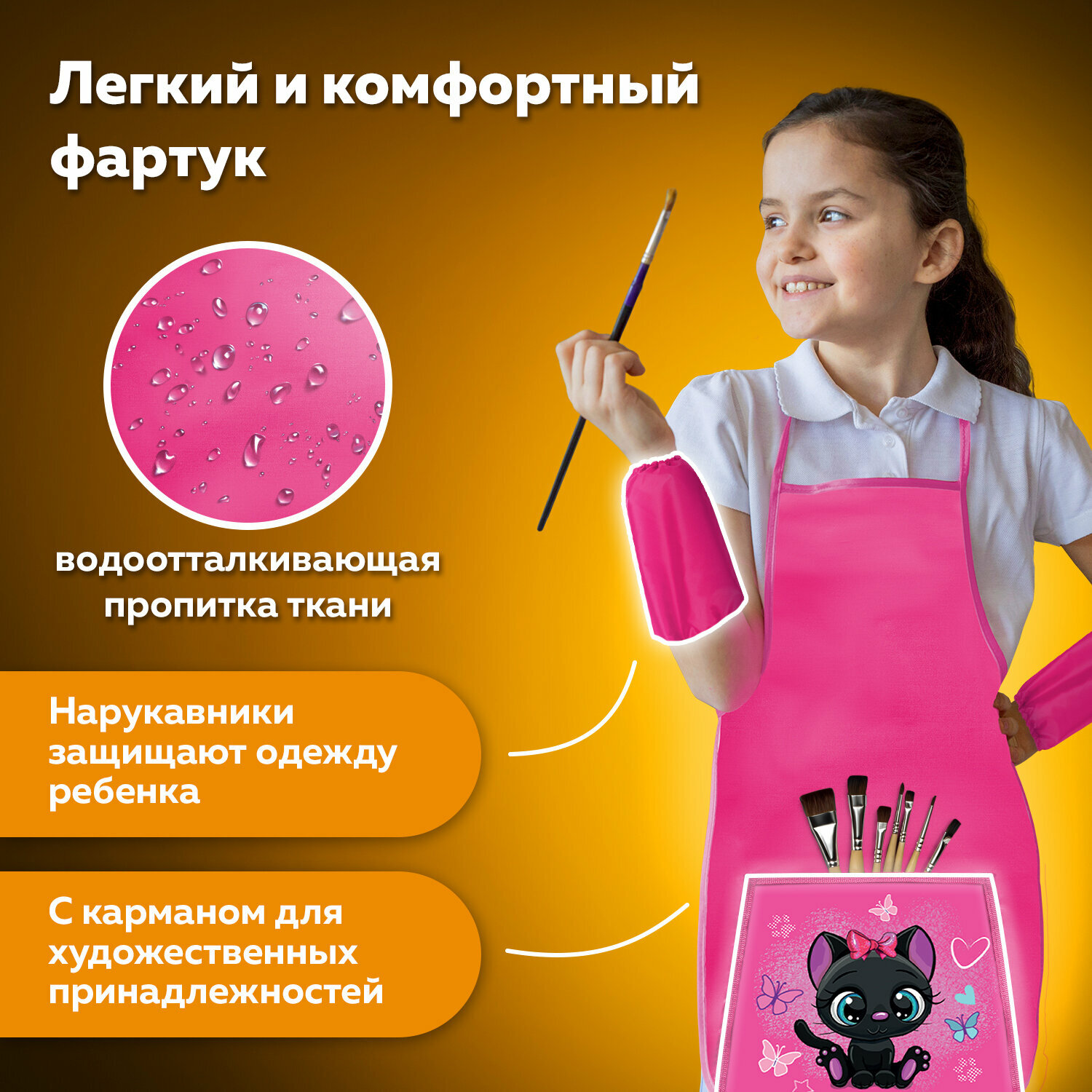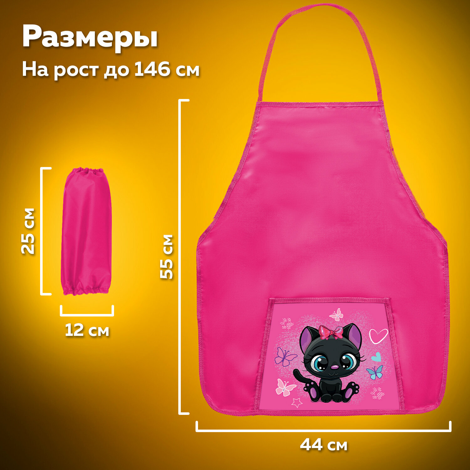 Фартук с нарукавниками для уроков труда пифагор, 1 карман, 44x55 см, "Black kitten", 270922 интересное: