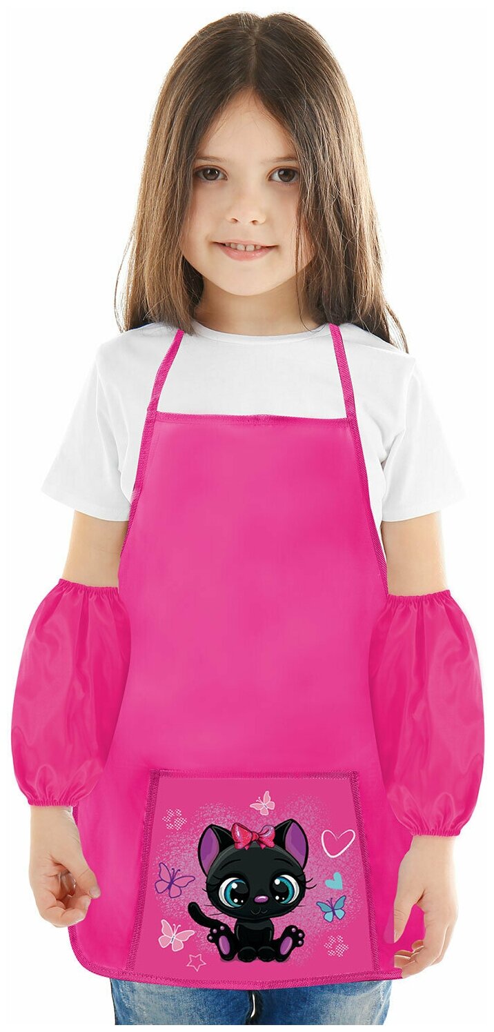 Фартук с нарукавниками для уроков труда Пифагор 1 карман, 44x55 см "Black kitten"