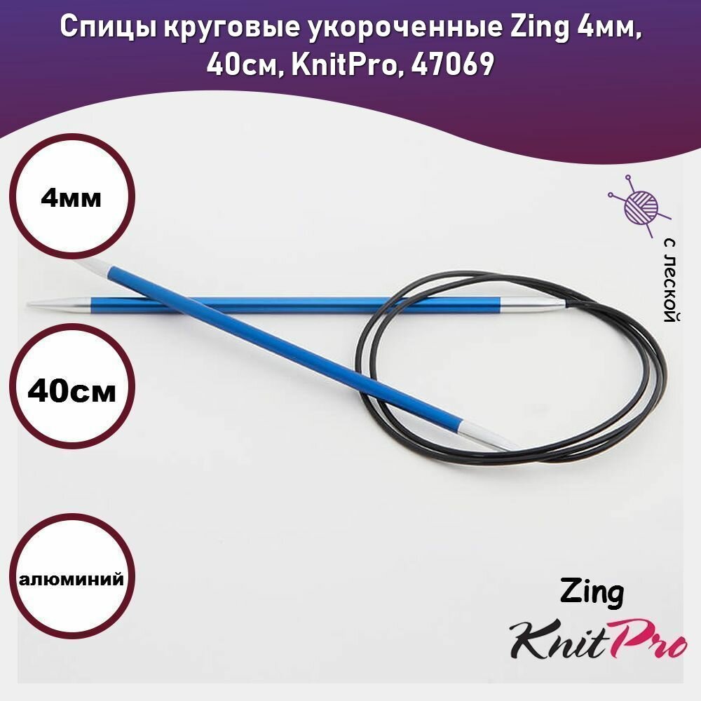 47069 Knit Pro Спицы круговые для вязания Zing 4мм/40см, алюминий