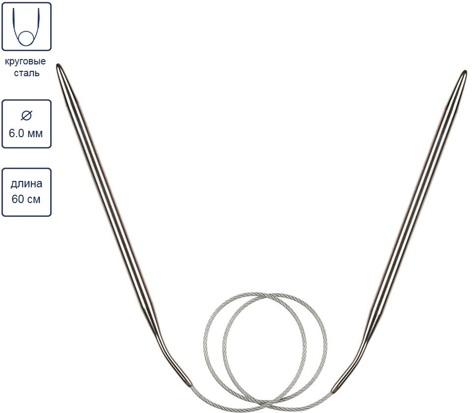 Купить Спицы Gamma круговые MKF сталь d 6.0 мм 60 см 1 шт с металлической леской