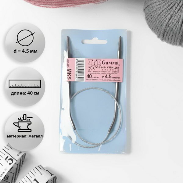 Спицы для вязания круговые GAMMA с металлической леской, d4,5мм, 100см, 1шт
