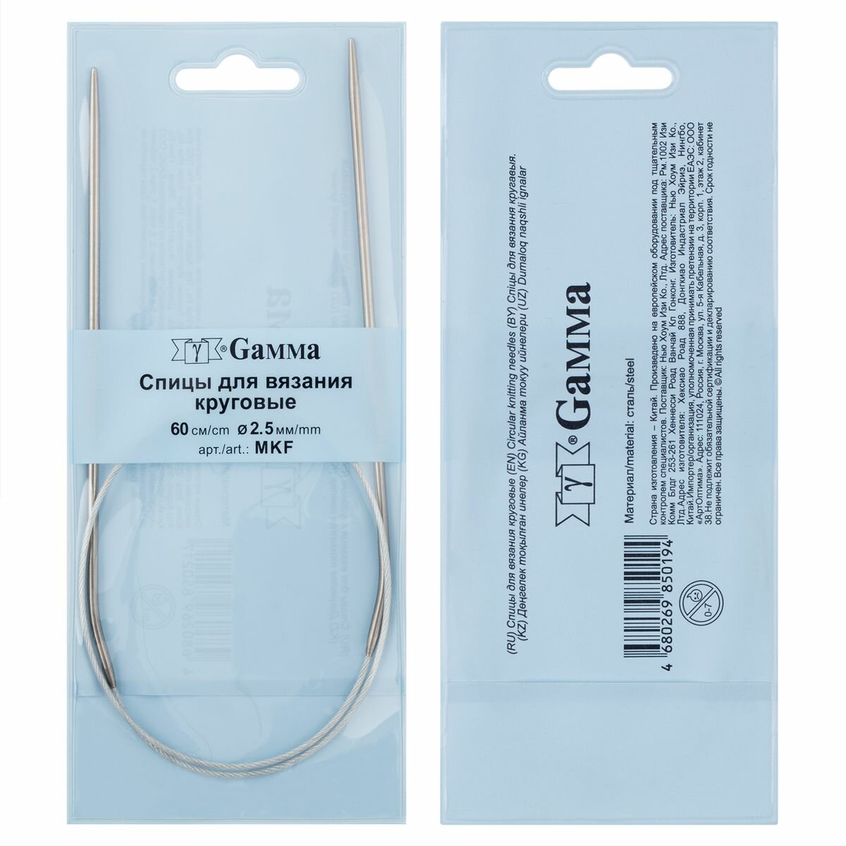 Спицы GAMMA круговые MKF металл d 2.5 мм 60 см с металлической леской