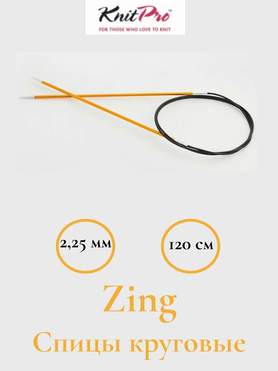 Спицы круговые Knit Pro Zing, 2,25 мм, 120 см, алюминий, янтарный (KNPR.47182)