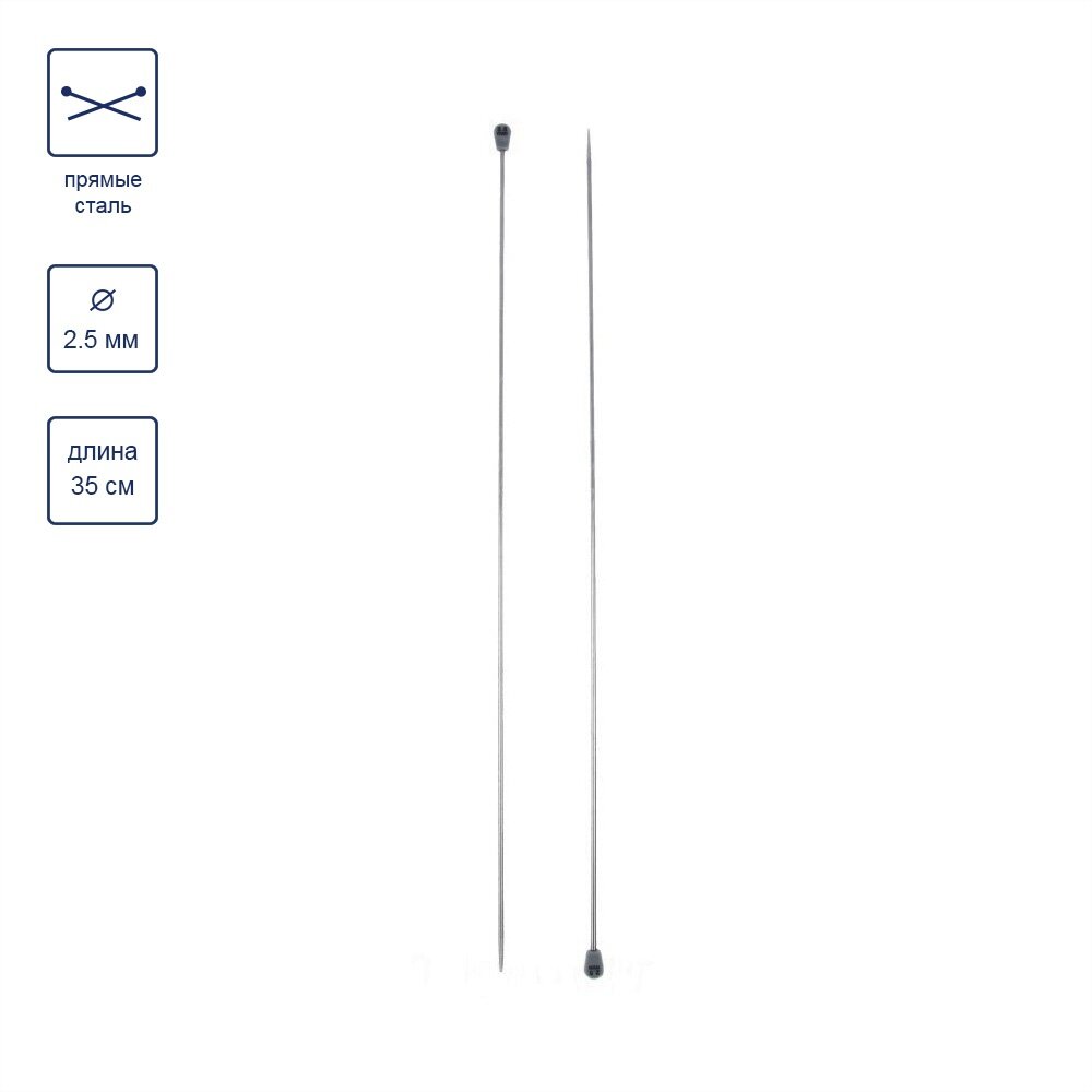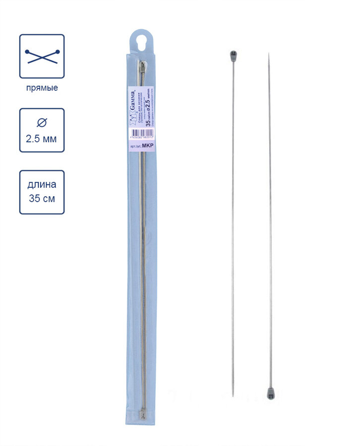 Купить Спицы для вязания Gamma прямые, металл, d 2,5 мм, 35 см, под никель