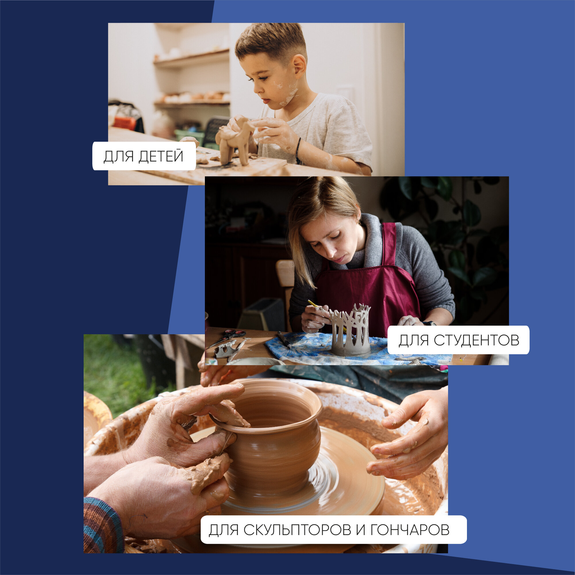 7 шт. Глина натуральная для лепки 1500 г, белая, Гамма "Хобби", (подходит для обжига) вакуумированная /Испания/