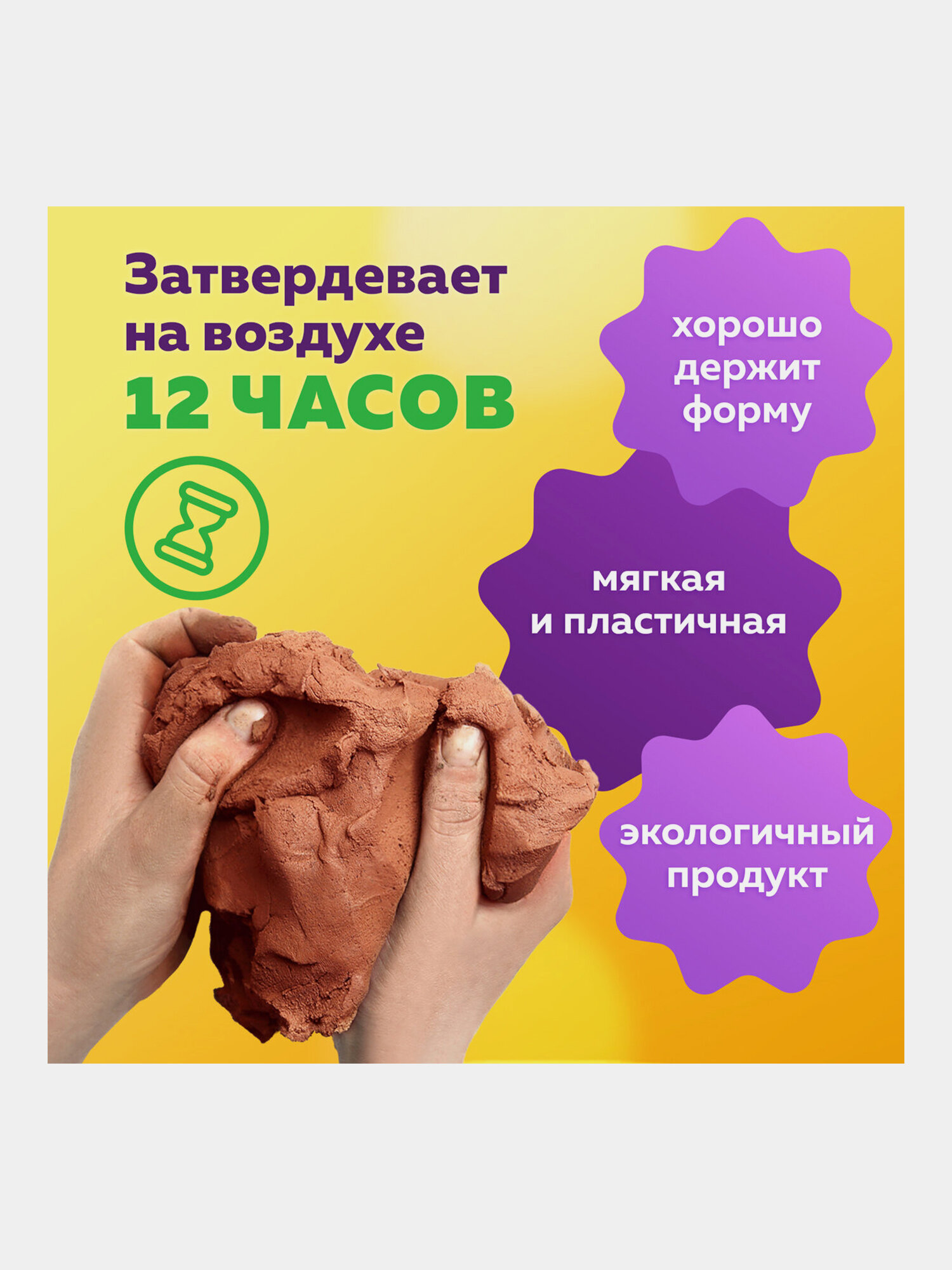 Глина для лепки самозастывающая 3 кг красная, вакуумированная, готовая, размачиваемая, Brauberg Hobby, 665360