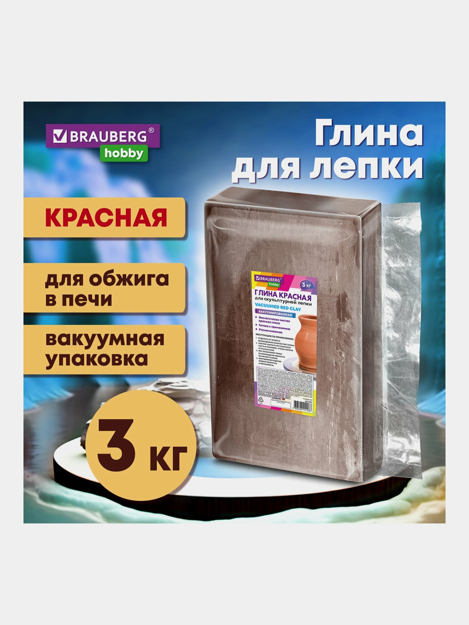 СохранитьГлина для лепки Brauberg Hobby, красная, 3кг, вакуумированная, готовая, размачиваемая (665360) интересное:
