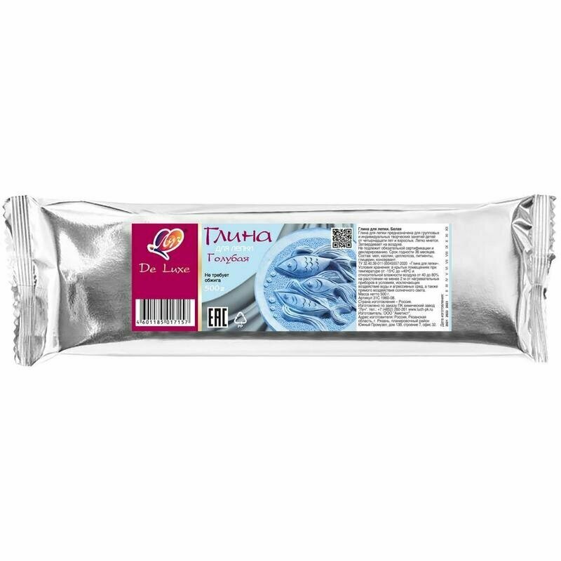 Глина для лепки Голубая 500 г "Луч" De Luxe, не требует обжига