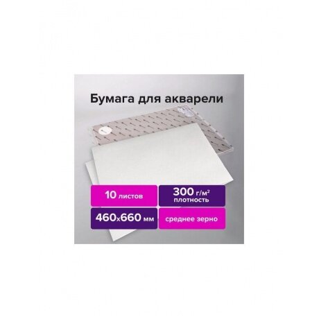 Купить Бумага для акварели 300 г/м2 460x660 мм среднее зерно, 10 листов, BRAUBERG ART PREMIERE, 113233