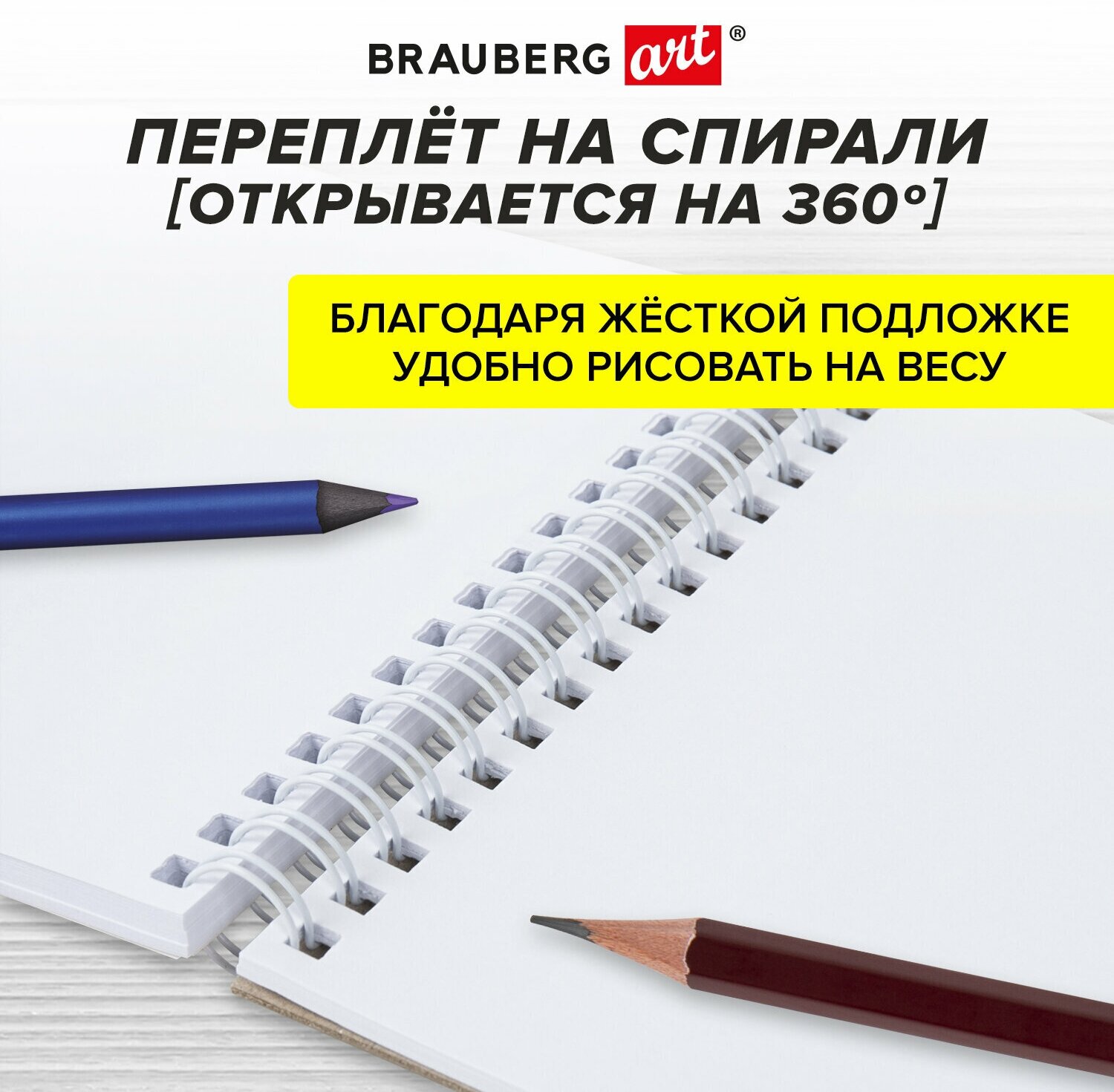 Скетчбук "BRAUBERG ART", гребень, формат А5, 50 листов, 2 листа непромокайки