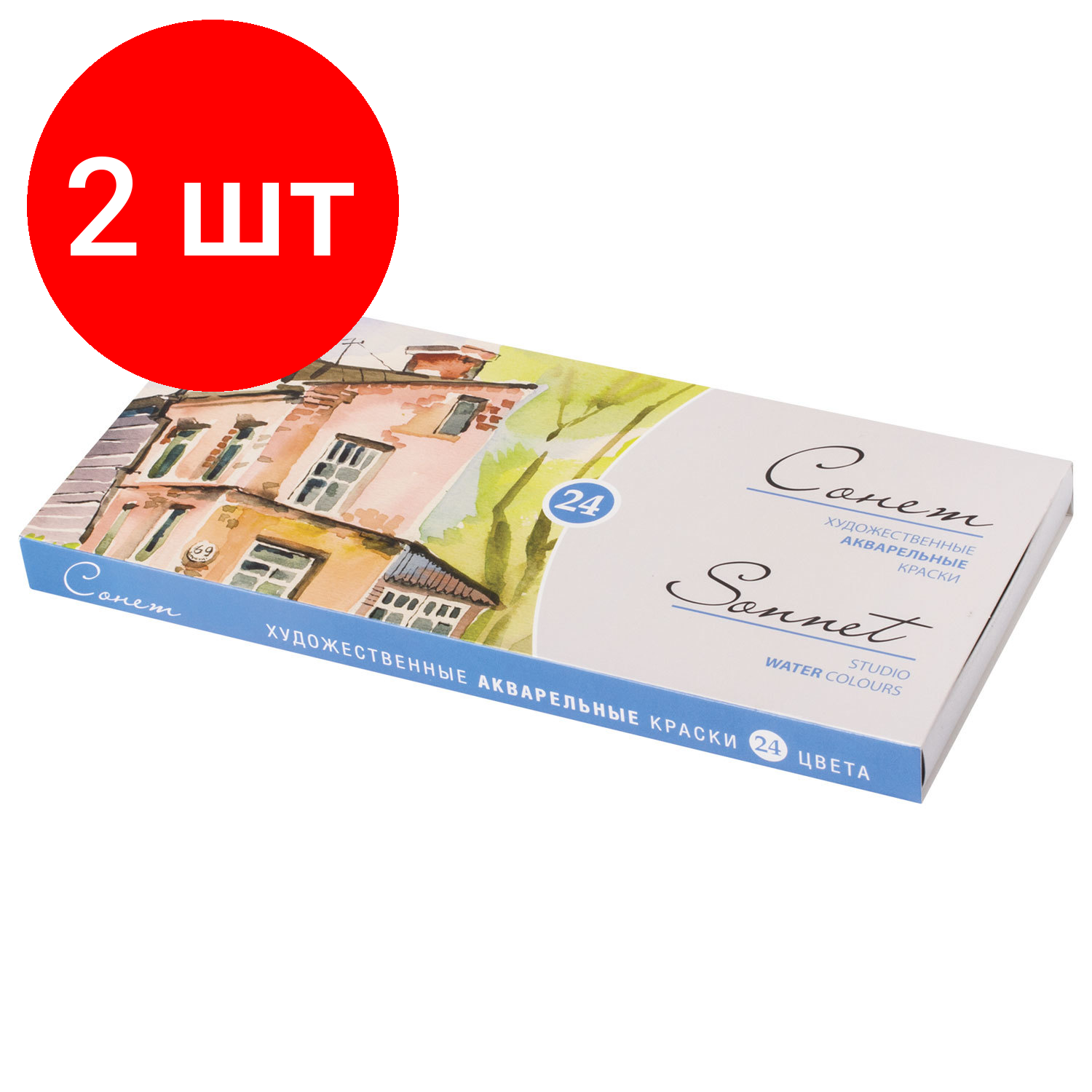 Купить Комплект 2 шт, Краски акварельные художественные "Сонет", 24 цвета, кювета 2.5 мл, картонная коробка, 3541139