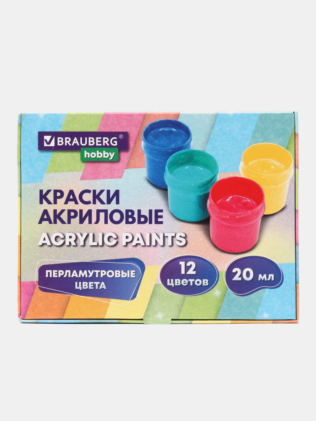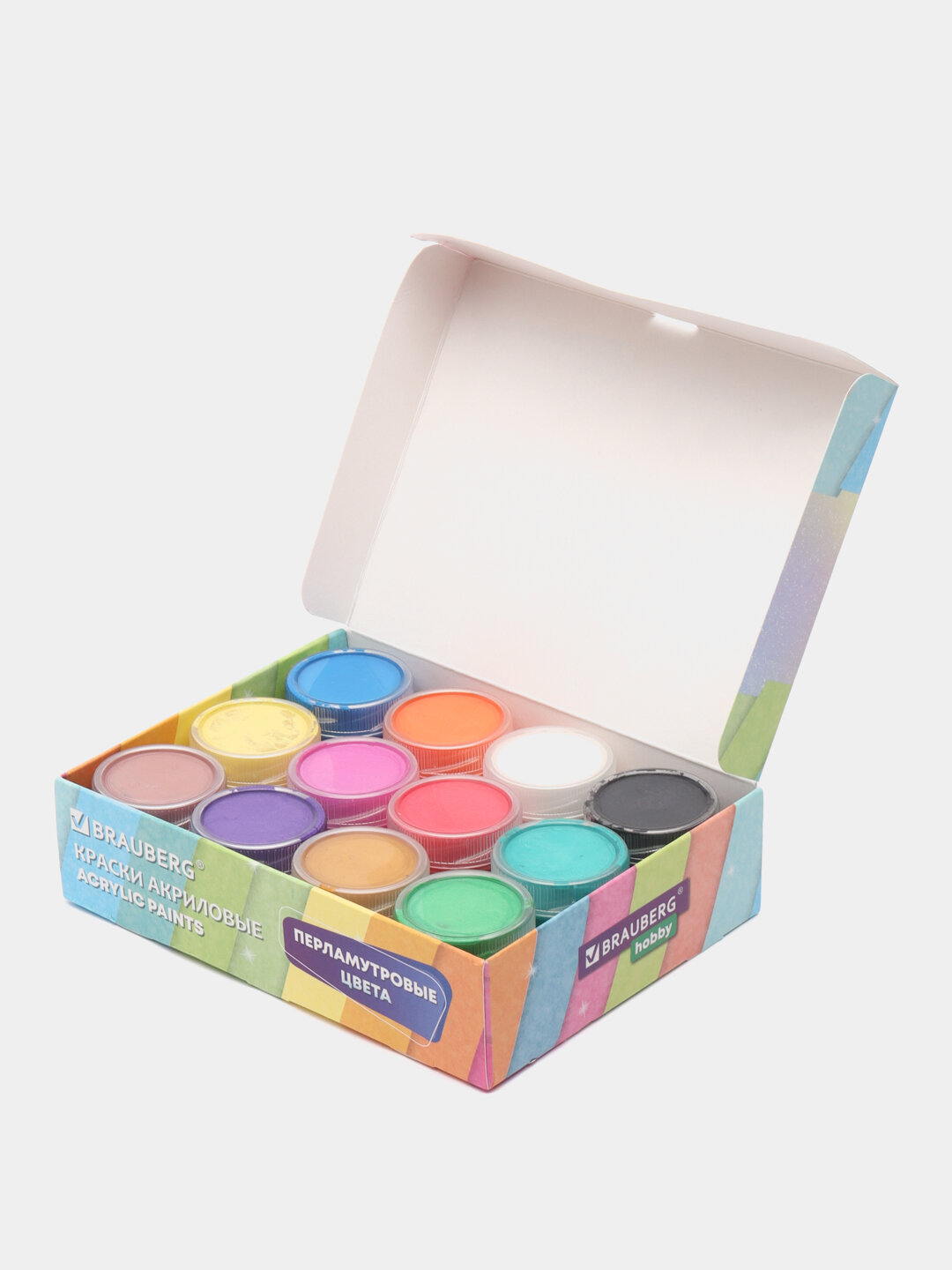 Краски акриловые перламутровые для рисования и творчества 12 цветов по 20 мл, BRAUBERG HOBBY, 192436, 1шт. в комплекте