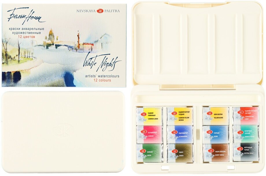 Краски акварельные художественные "Белые ночи", 12 цветов, кювета 2,5 мл, картонная коробка, 1942036