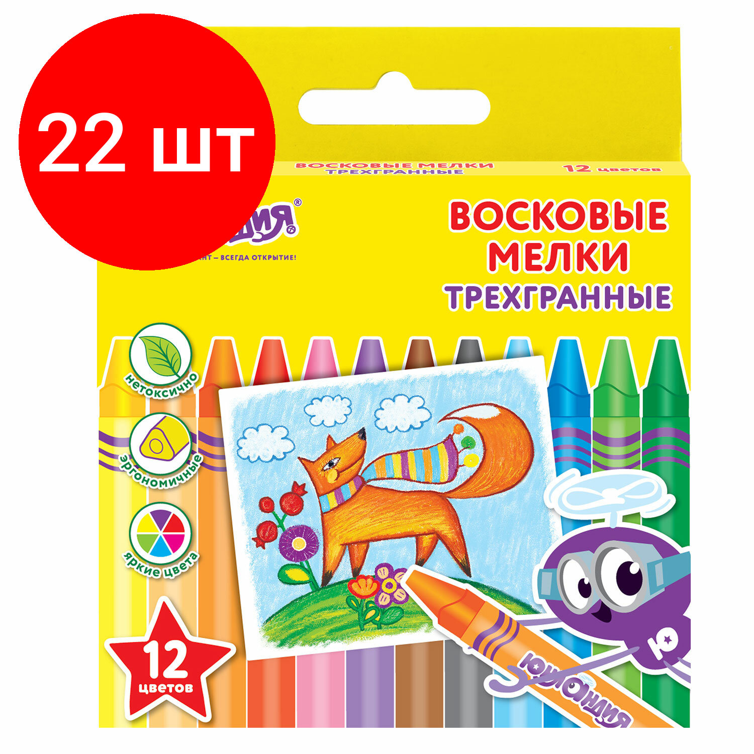 Купить Комплект 22 шт, Восковые карандаши трехгранные юнландия "юнландик И мудрый ЛИС", набор 12 цветов, 227289