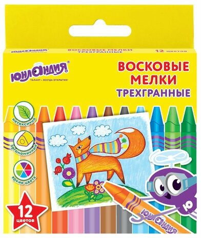 | Комплектация | Карандаши восковые Юнландик и Мудрый лис, 12 цветов |
