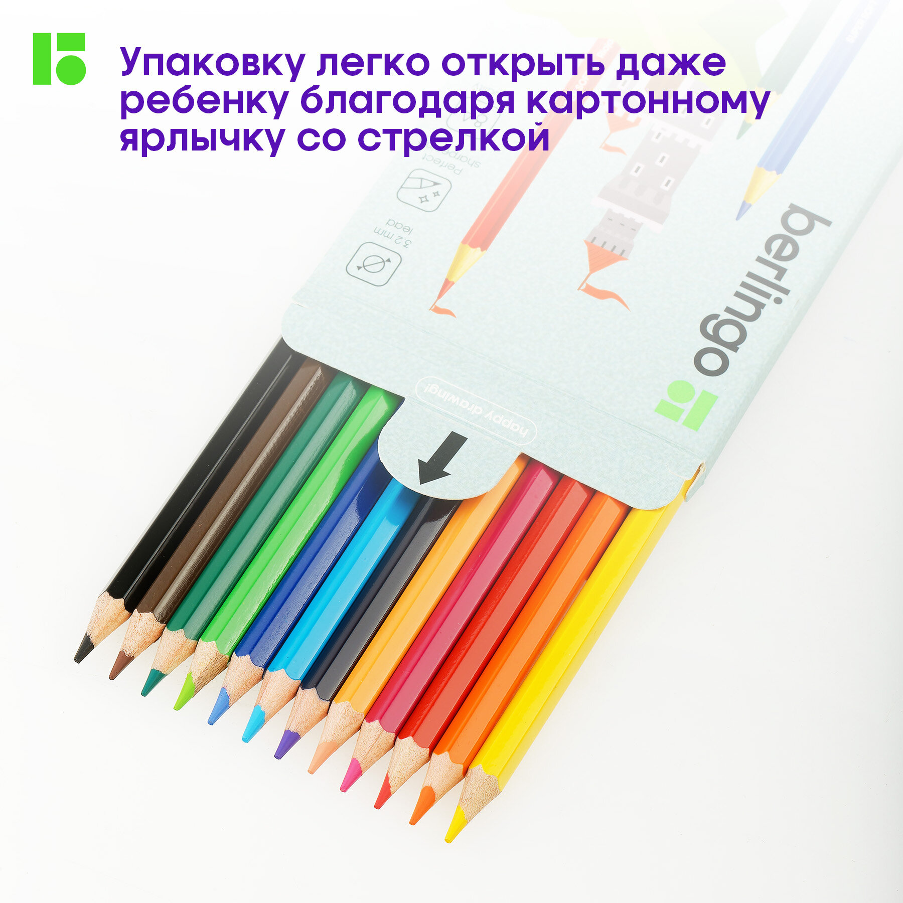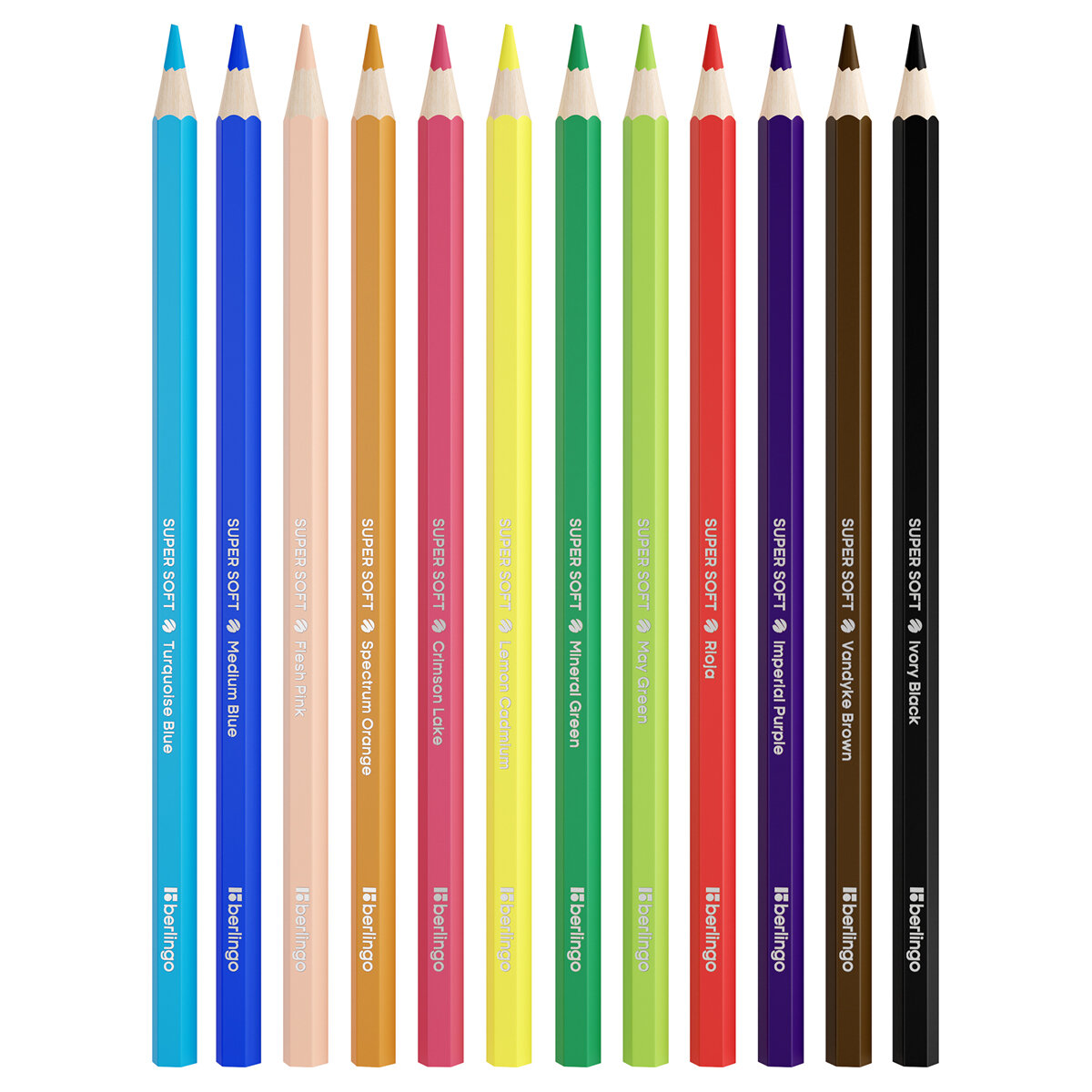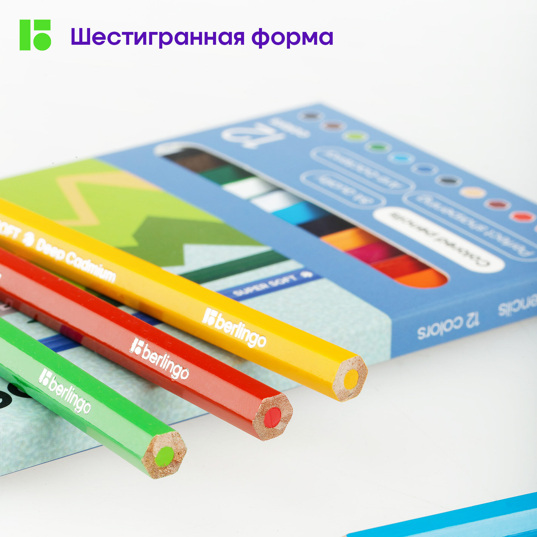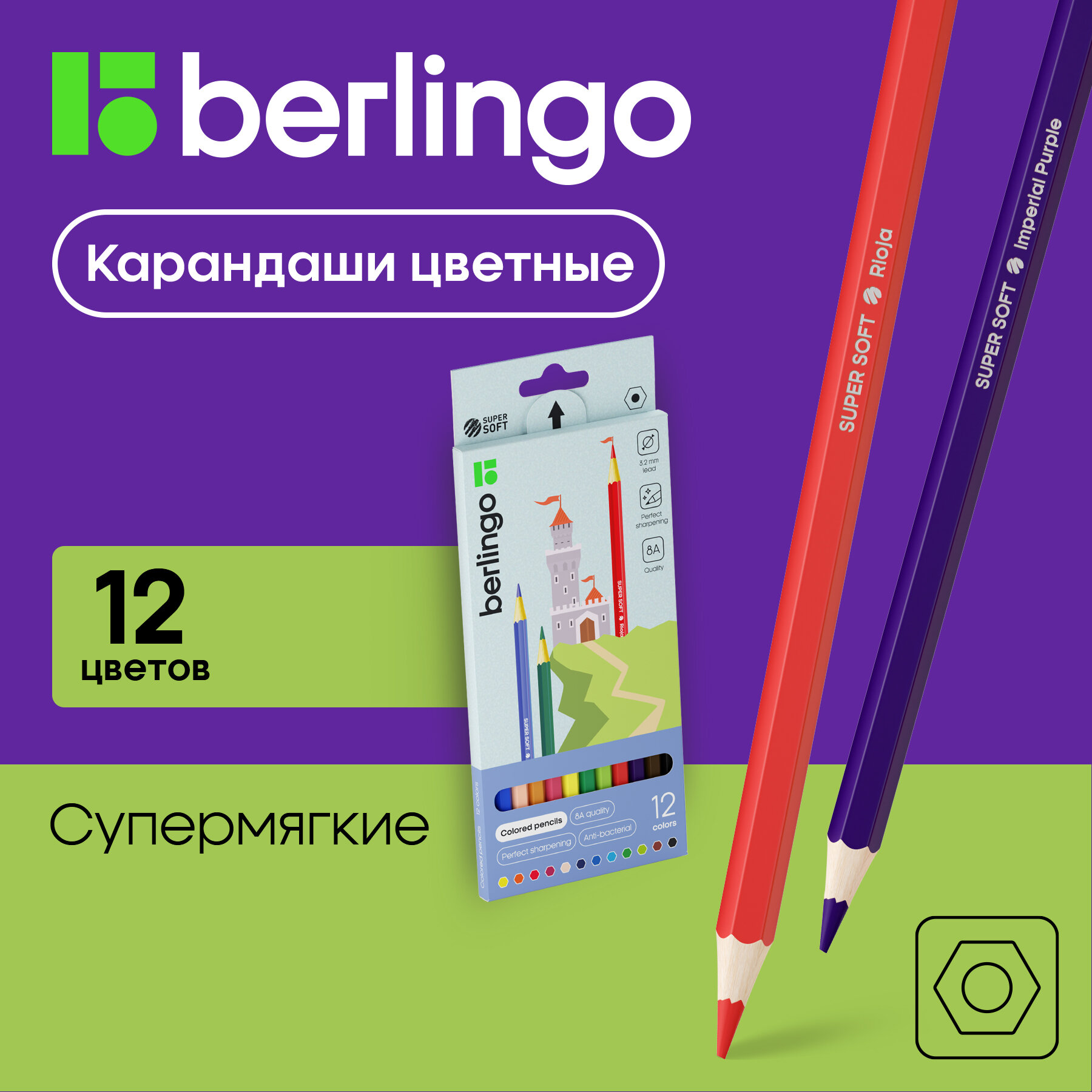 Цветные карандаши Berlingo "SuperSoft. Замки" для школы 12 цветов, шестигранные / Набор цветных карандашей для рисования