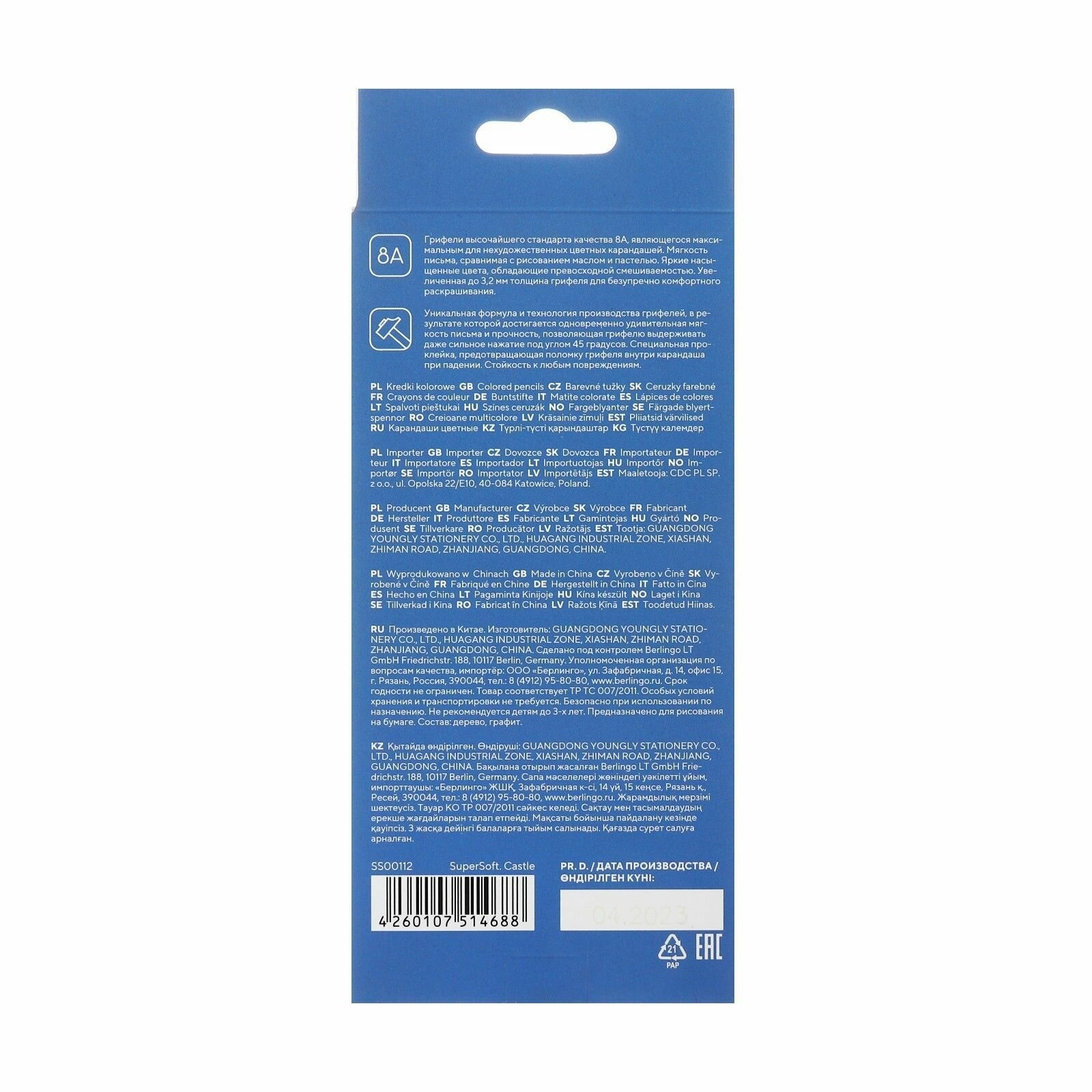 Карандаши цветные 12 цветов Berlingo "SuperSoft. Замки" (L=180мм, D=7мм, d=3.2мм, 6гр) картон, европодвес (SS00112), 12 уп.