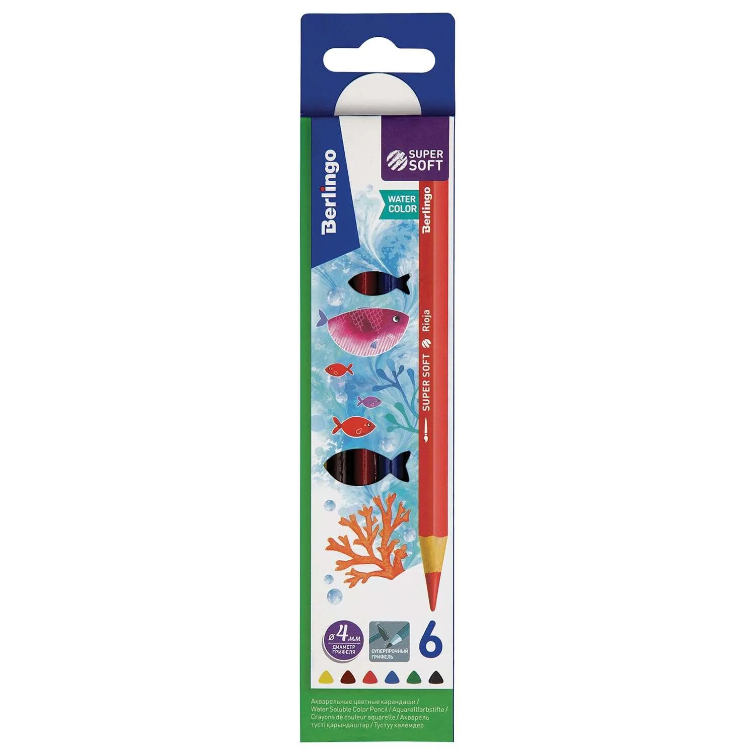 Карандаши акварельные 6 цветов Berlingo "SuperSoft. Рыбки" (L=180мм, D=7мм, 3гр) картон (SSA1706), 24 уп.