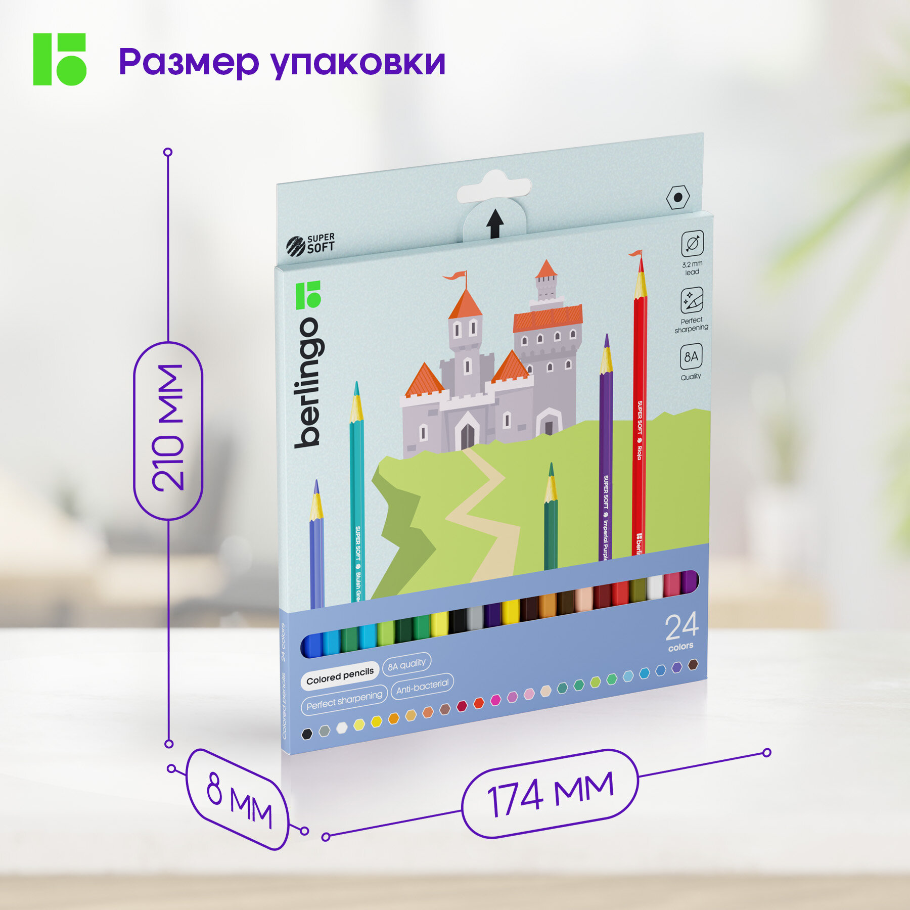 Цветные карандаши для школы 24 цвета, шестигранные / Набор цветных карандашей для рисования школьный Berlingo "SuperSoft. Замки" интересное: