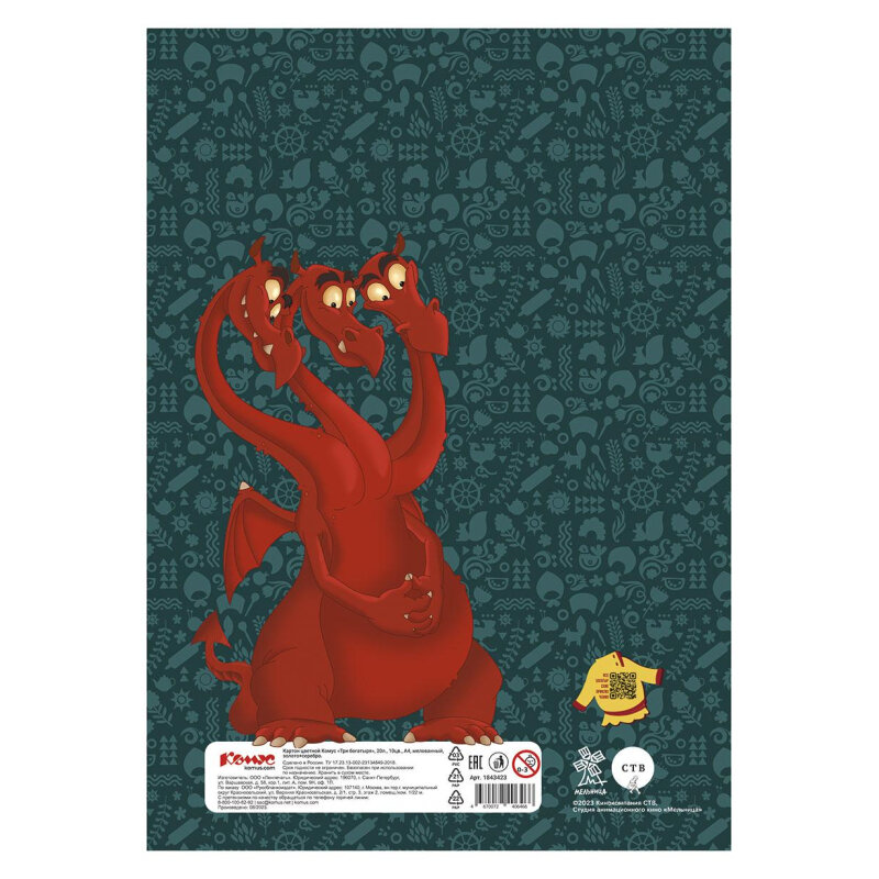 Купить Цветной картон Комус Три Богатыря, А4, 20 листов, 10 цветов