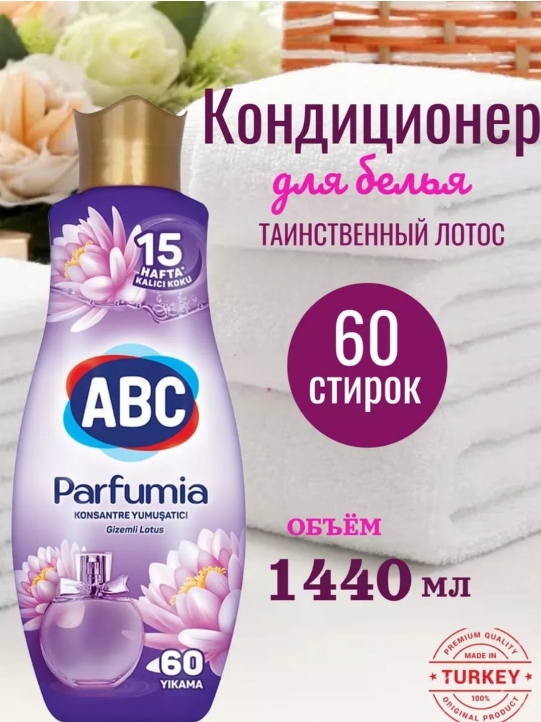 Концентрированный кондиционер для белья АВС 1440 мл "Таинственный Лотос" / Турция