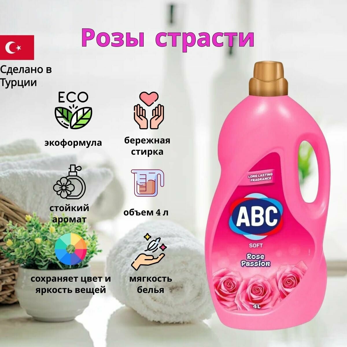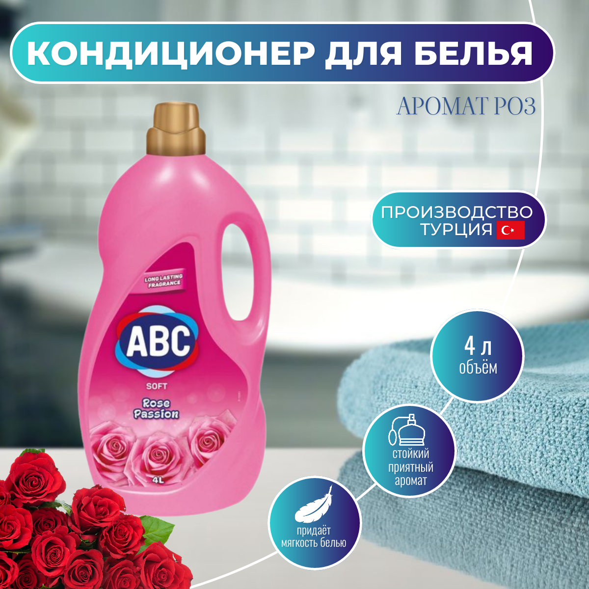 Купить ABC кондиционер для белья 4л. Розы страсти