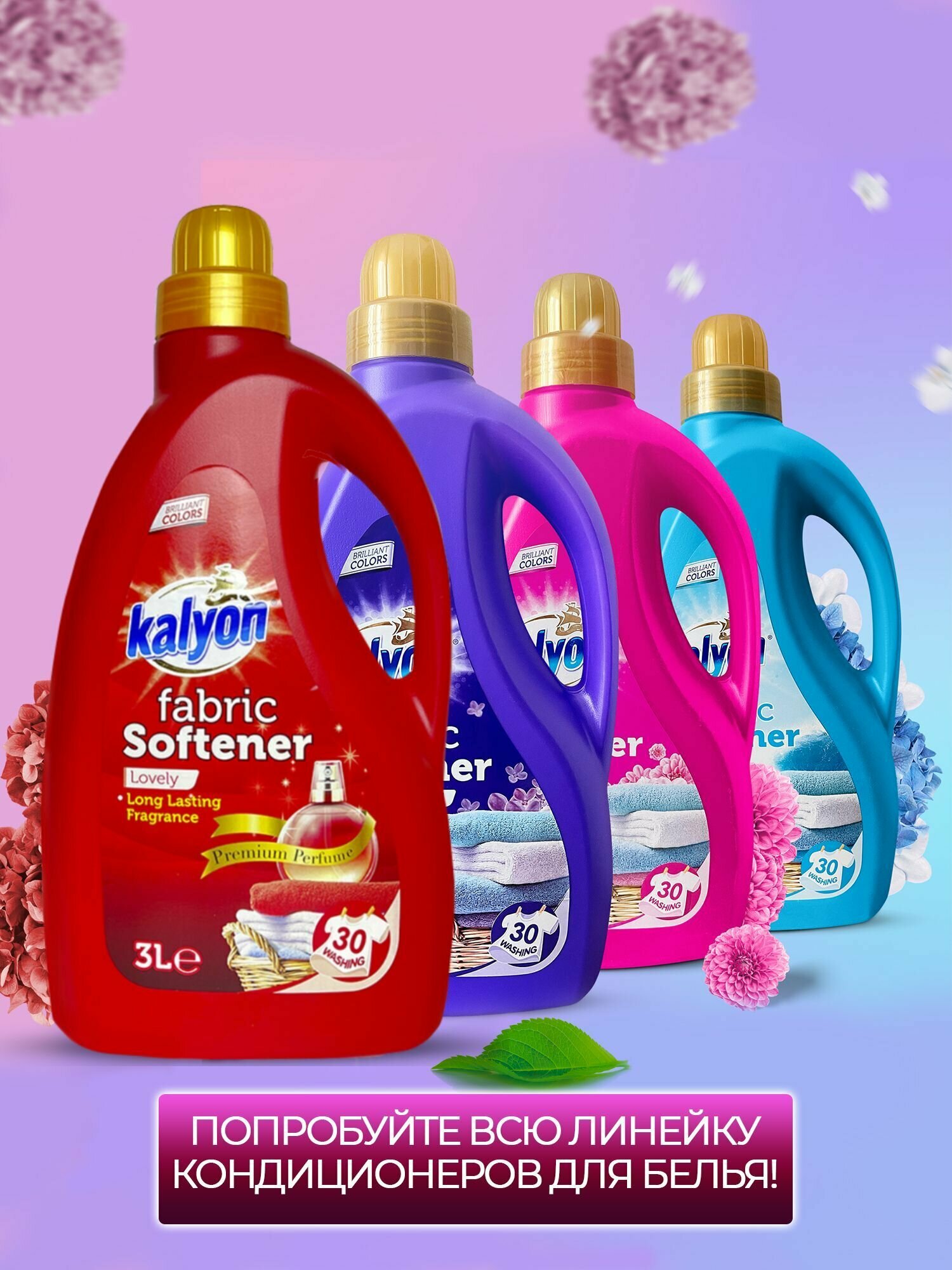 Кондиционер ополаскиватель для белья KALYON FABRIC SOFTENER Цветочный аромат 3 л, без фосфатов, с антистатическим эффектом