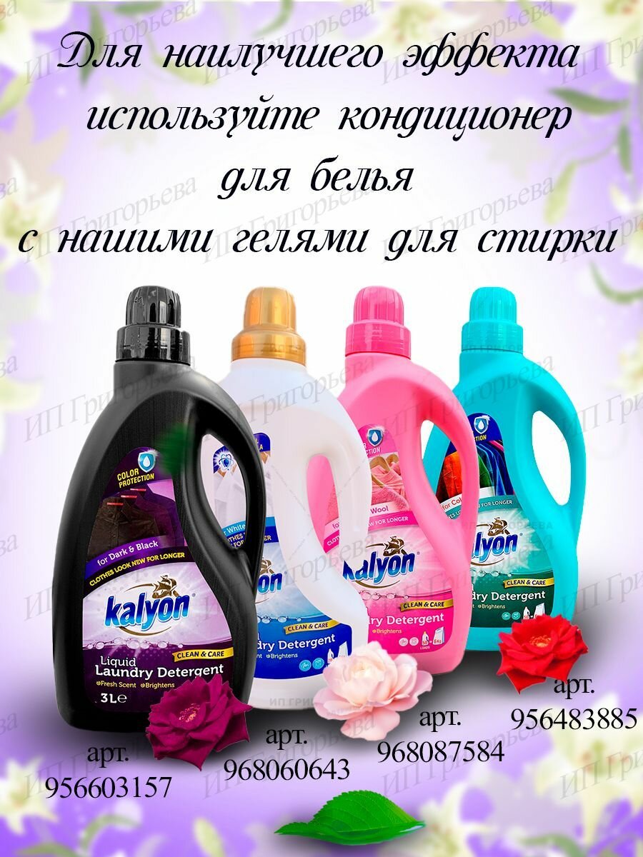Кондиционер для белья Kalyon средство для стирки концентрированный, гипоаллергенный приятный аромат орхидея и цветы 0.75 литра