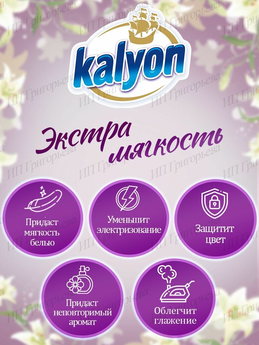 Кондиционер для белья Kalyon средство для стирки концентрированный, гипоаллергенный приятный аромат белый цветок 0.75 литра