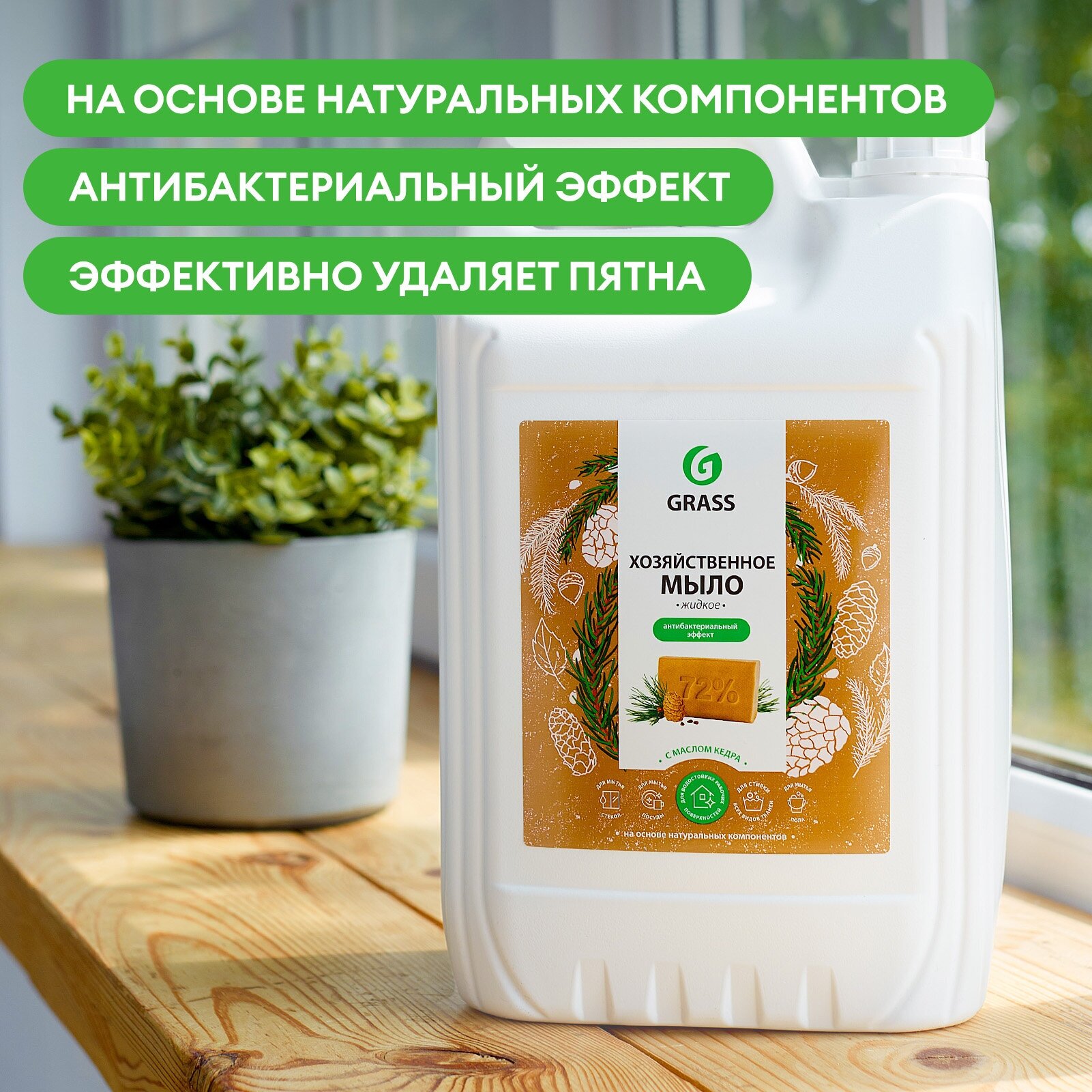 Мыло жидкое хозяйственное Grass Milana с маслом кедра, 5л интересное: