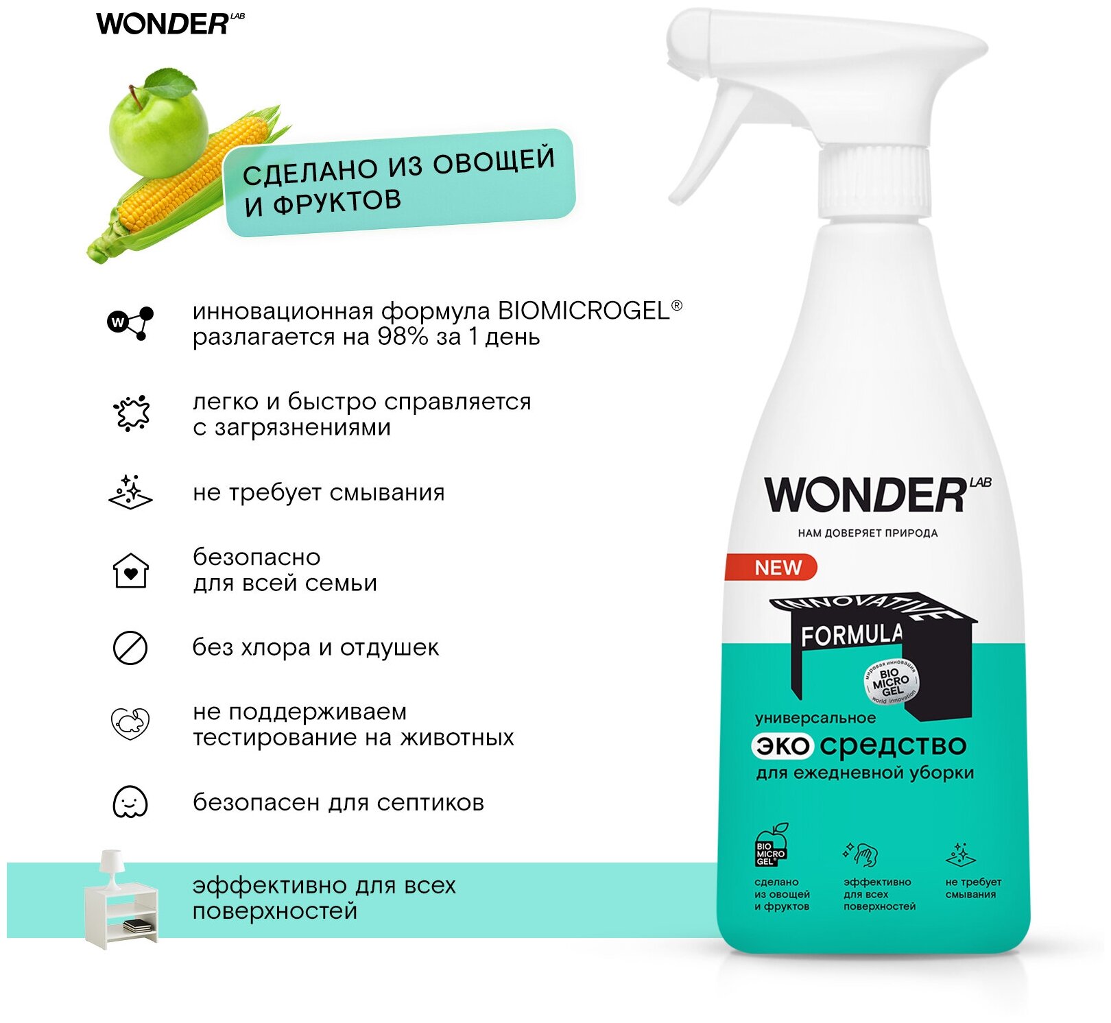 Wonder Lab - универсальное эко-средство для уборки дома 550мл, антипыль, полироль интересное: