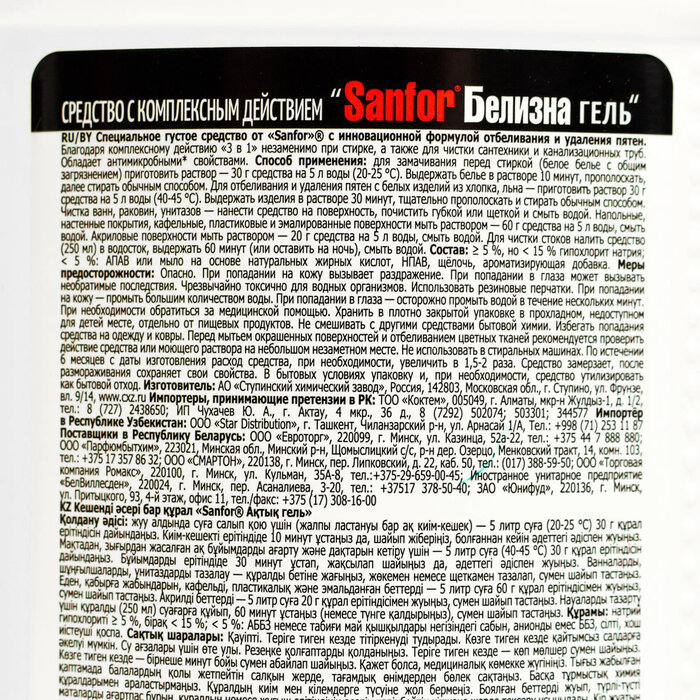 Sanfor Гель Белизна 3 в 1 {универс. с хлором} 500г