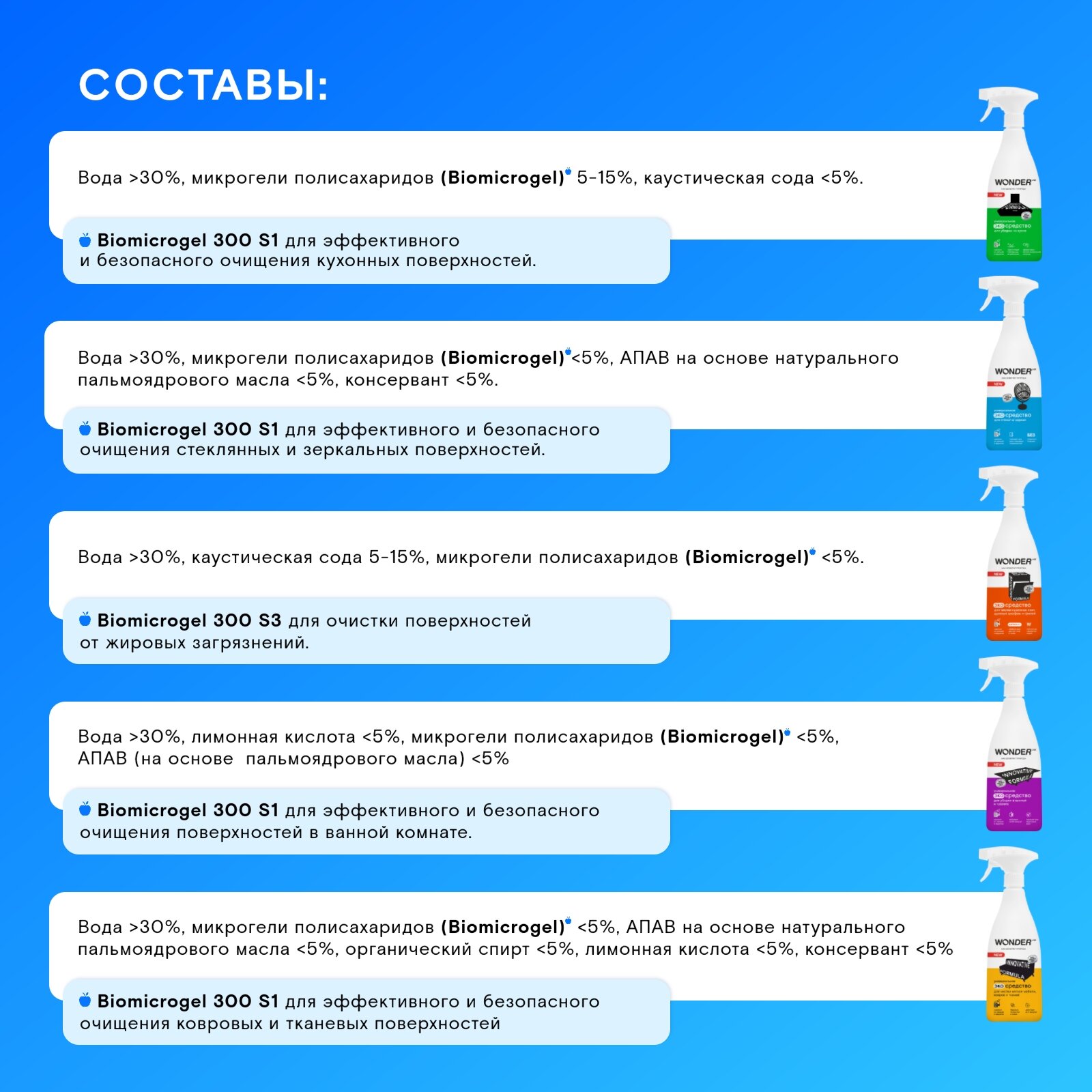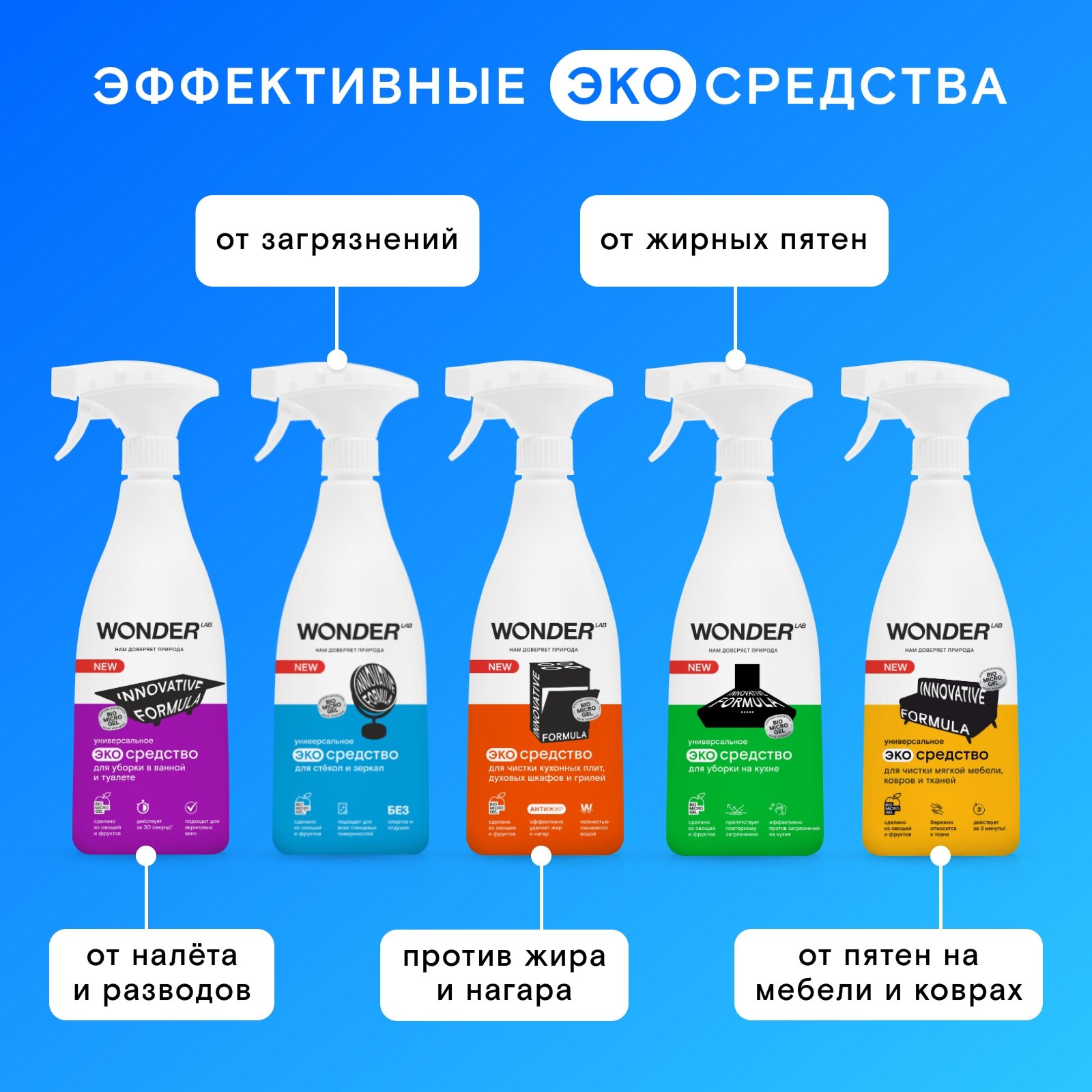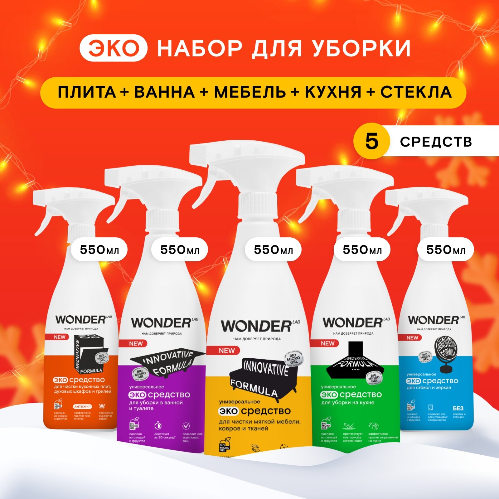 Купить Набор для средств для уборки дома, ванной и кухни универсальный 5 средств WONDER LAB