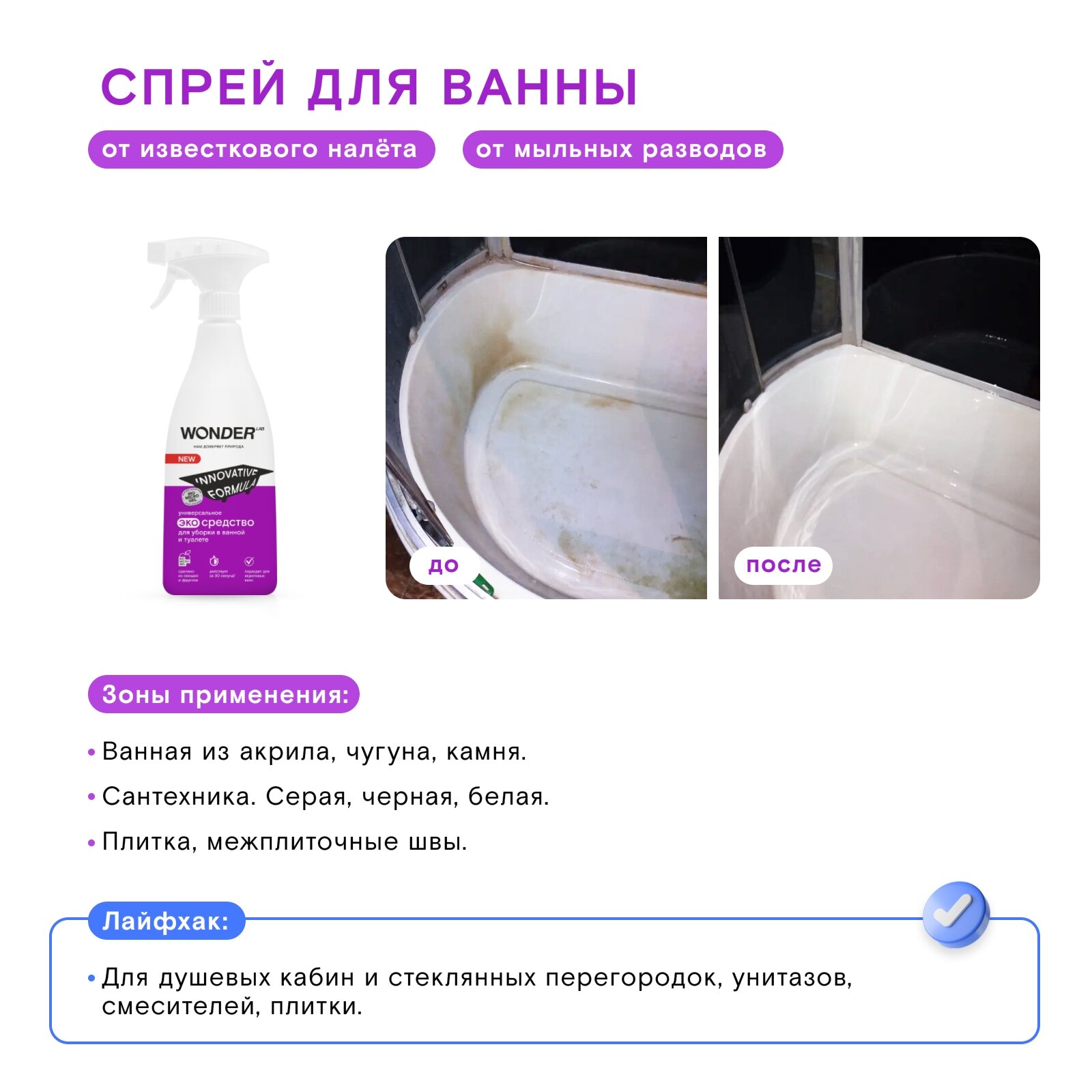 | Эффект | антибактериальный / устранение застарелого жира / устранение накипи / устранение неприятных запахов / устранение плесени / устранение ржавчины |