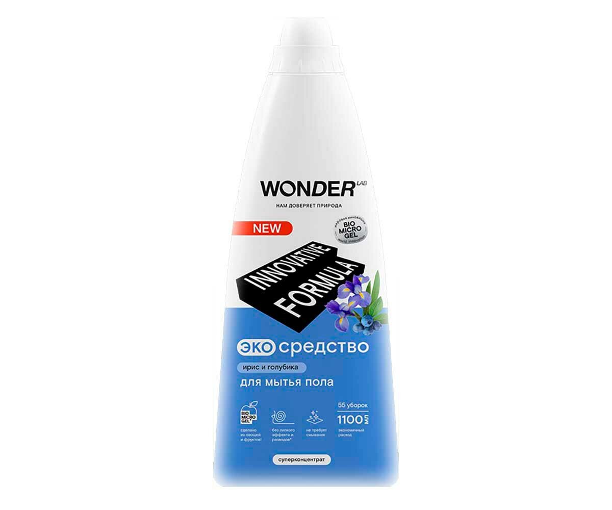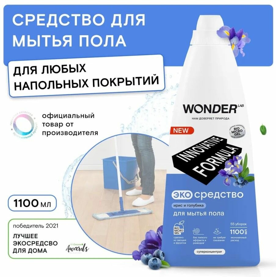 WONDER LAB, Средство для мытья пола, концентрированное, с ароматом ириса и голубики, 1100 мл