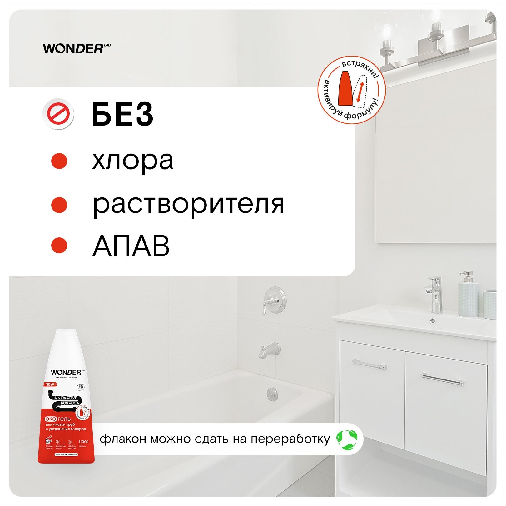 WONDER LAB Экогель для чистки труб и устранения засоров 1100 мл/