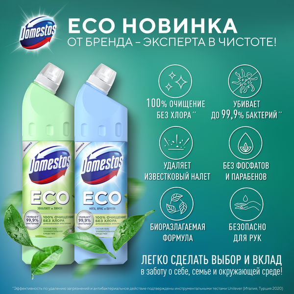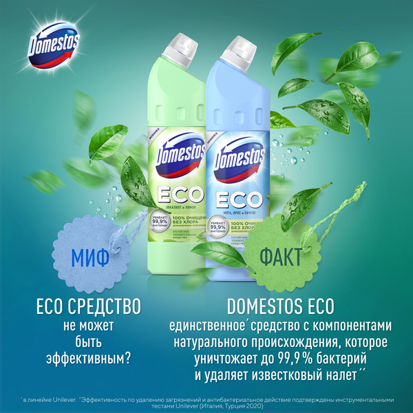 Купить Средство для сантехники DOMESTOS ECO Мята, ирис и пачули анти-налет 750мл