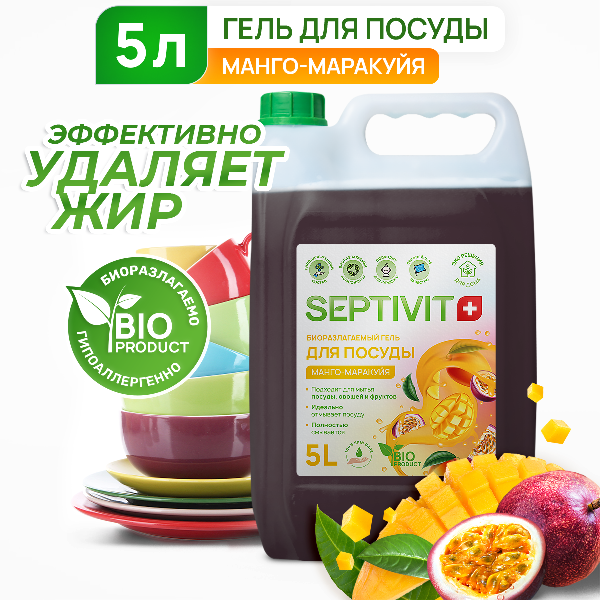 Гель для посуды SEPTIVIT "Маракуйя", биоразлагаемый, 5 л