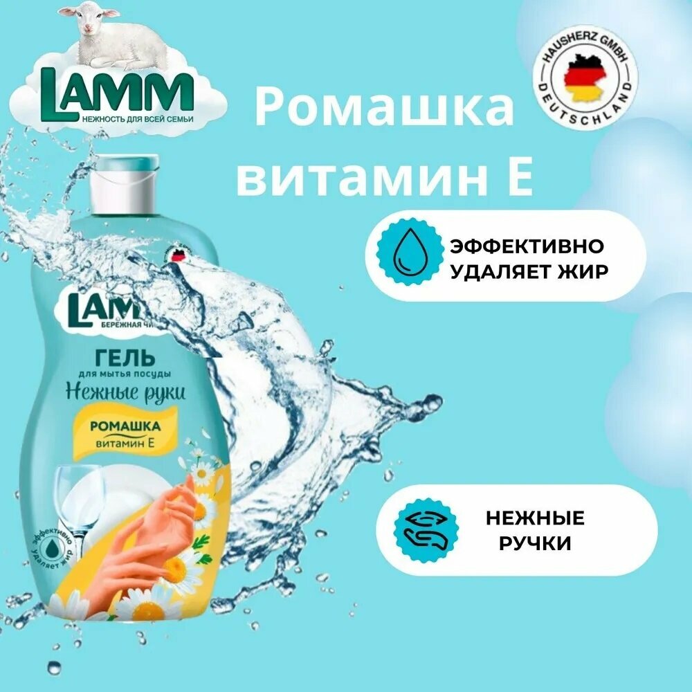 Средство Lamm для мытья посуды Ромашка и витамин Е, 450 мл