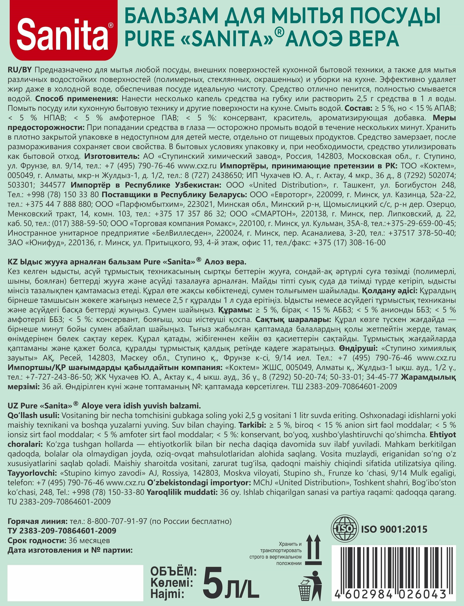 Купить Sanita Cредство бальзам для мытья посуды Алоэ Вера, 5 л