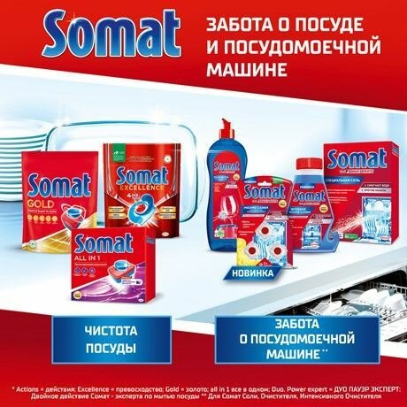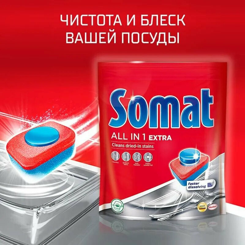 | Комплектация | Somat All in 1 Таблетки для посудомоечной машины, 100 шт., коробка |