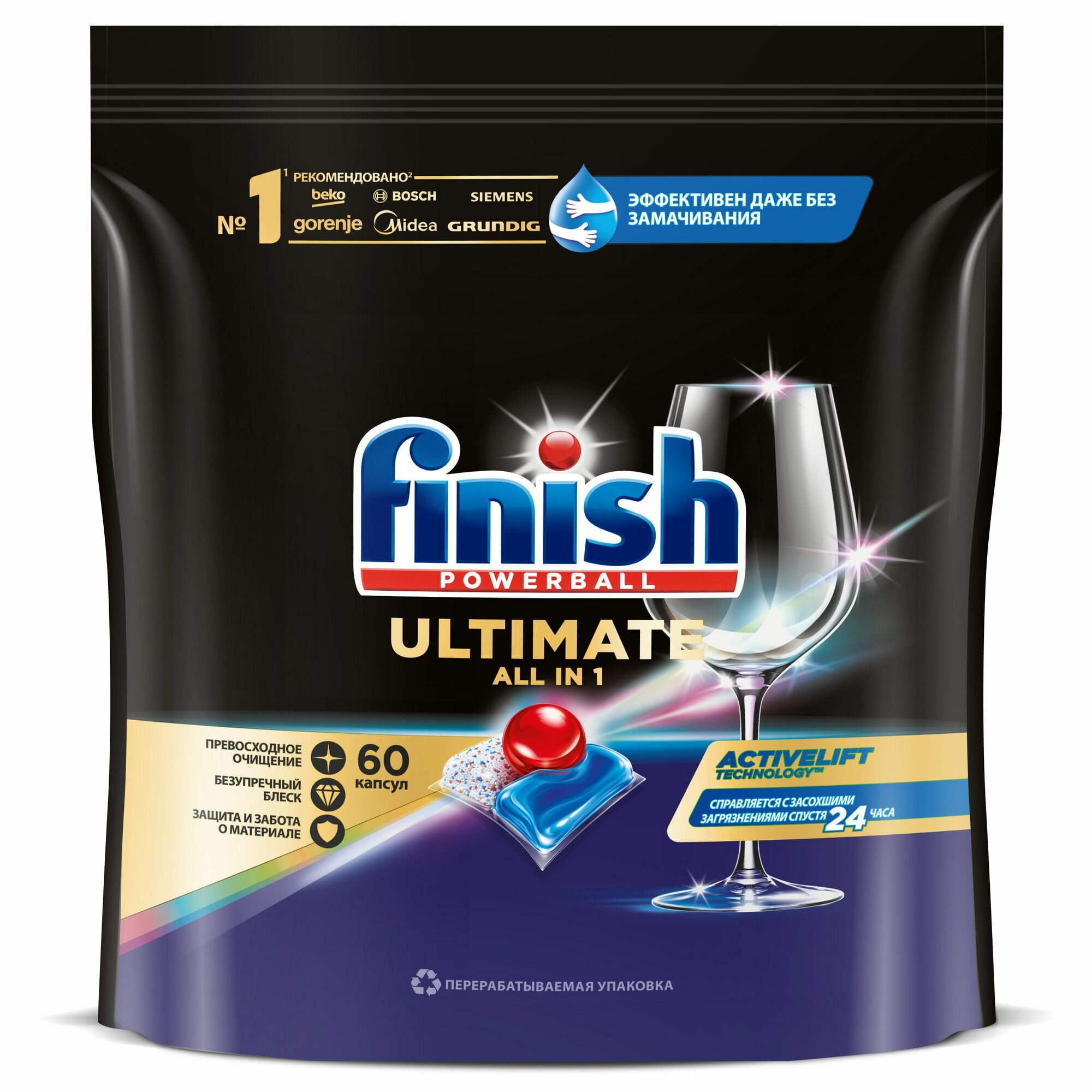 Капсулы для мытья посуды Finish Ultimate для посудомоечной машины, таблетки для посудомоечных машин, 60 шт.