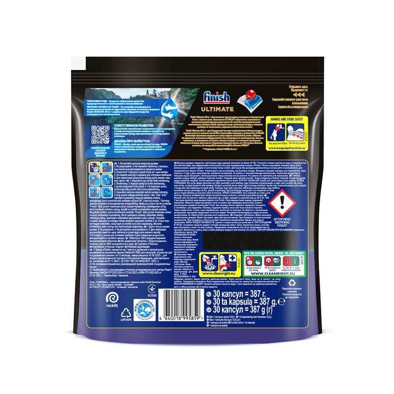 Капсулы для посудомоечных машин Finish Ultimate бесфосфатные, 30 шт