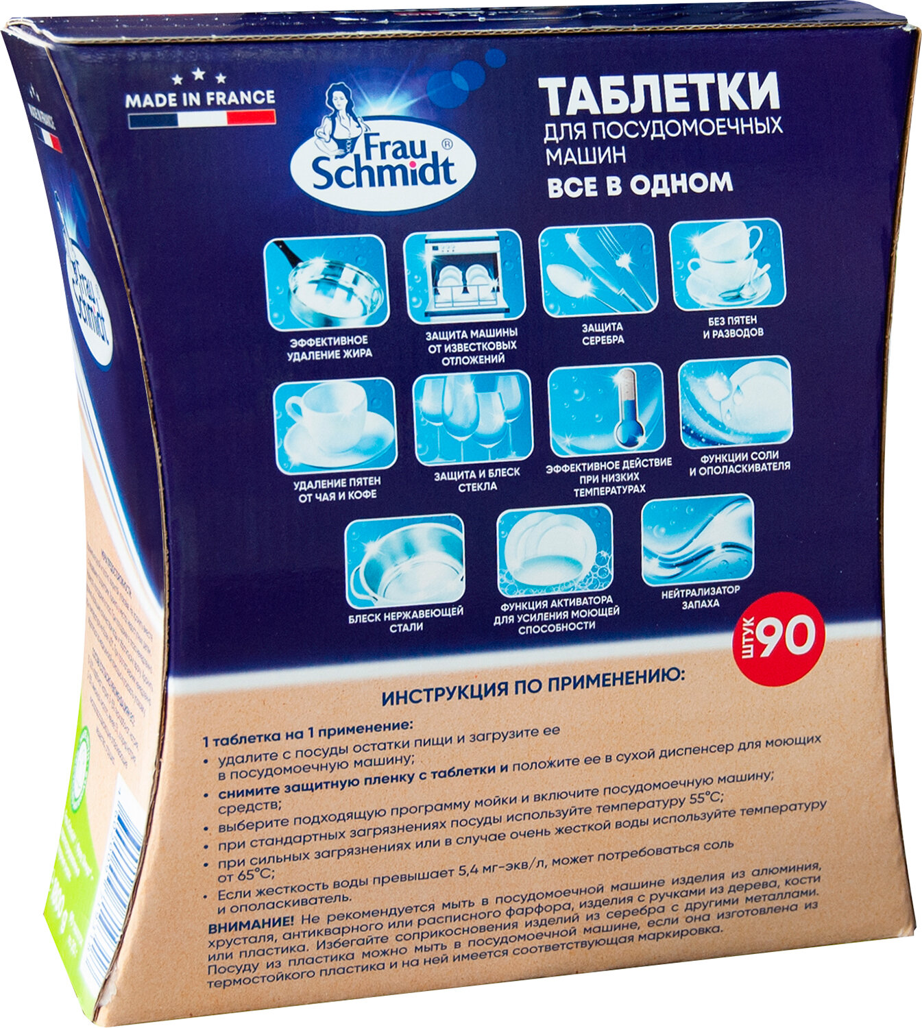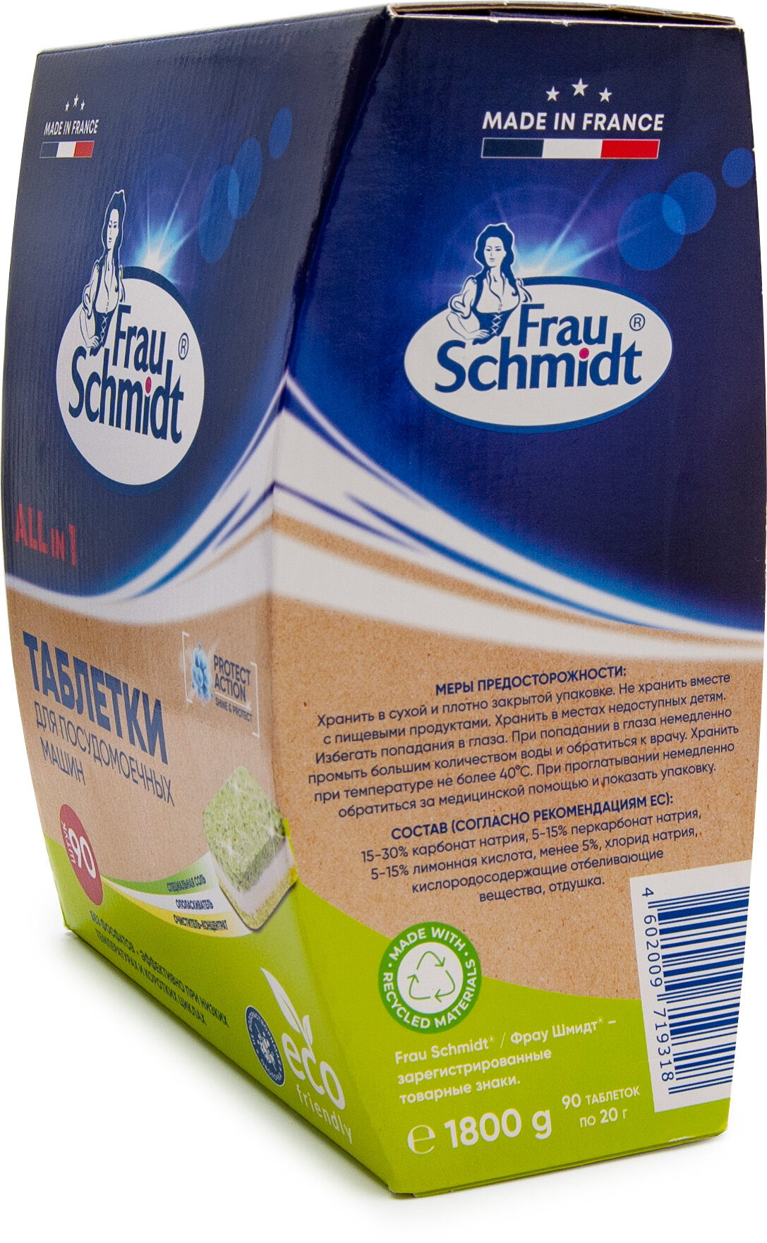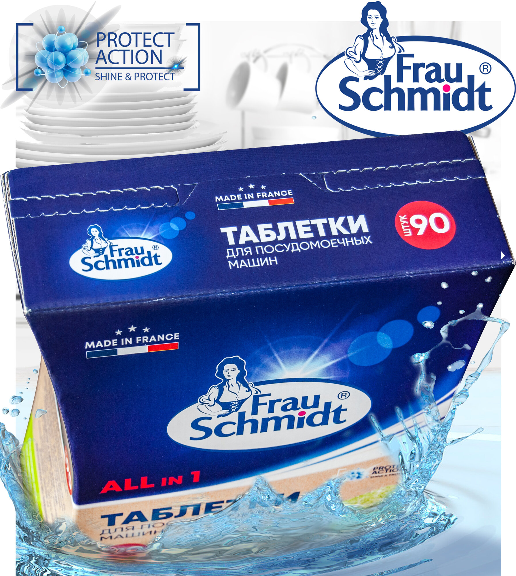 Frau Schmidt Эко Таблетки с функцией соли и ополаскивателя для мытья посуды в посудомоечной машине "Все в 1" без фосфатов 90 таб