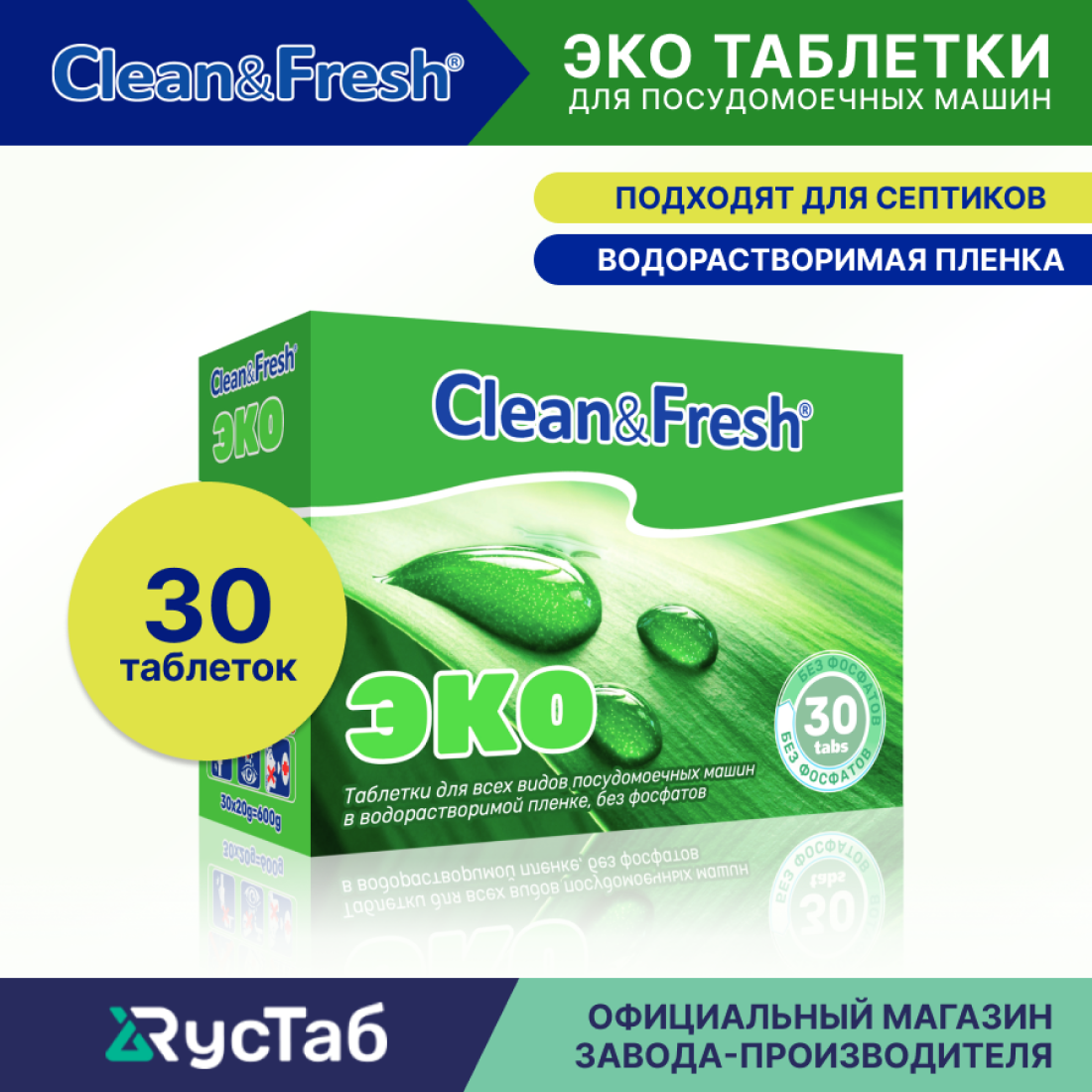 Купить Таблетки для посудомоечной машины эко биоразлагаемые, без фосфатов"Clean&Fresh", 30 штук
