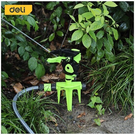 Купить Дождеватель-разбрызгиватель импульсный на 3-х пиках Deli DL581302 площадь орошения до 380кв.м, сектор полива 0-360 град, ударопрочный пластик