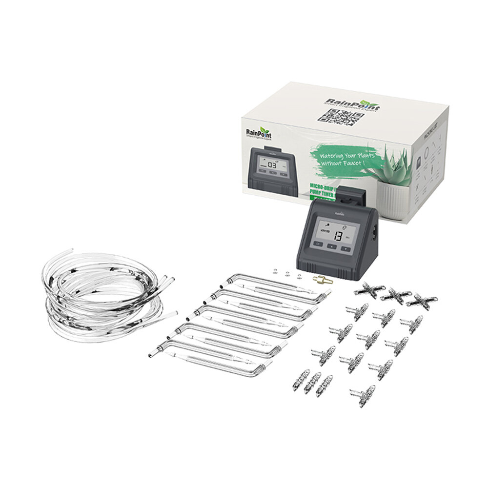 | Комплектация | блок управления - 1 шт, USB кабель - 1 шт, гибкий шланг 1/4" - 10 м, трубки капельного полива - 10 шт, Т-образные соединители - 10 шт, прямые соединители - 3 шт, угловые соединители - 3 шт, заглушки - 3 шт, фильтр - 1 шт, инструкция - 1 шт |