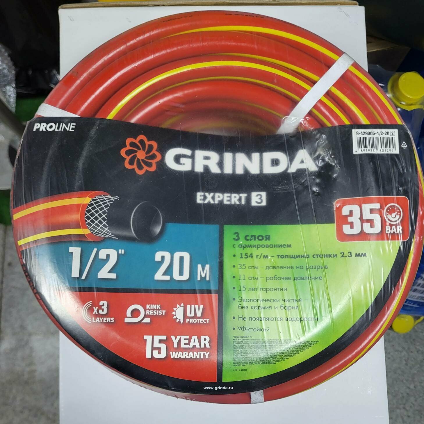GRINDA Шланг GRINDA EXPERT поливочный, 35 атм., армированный, 3-х слойный, 1/2"х20м, ( 8-429005-1/2-20_z02 )