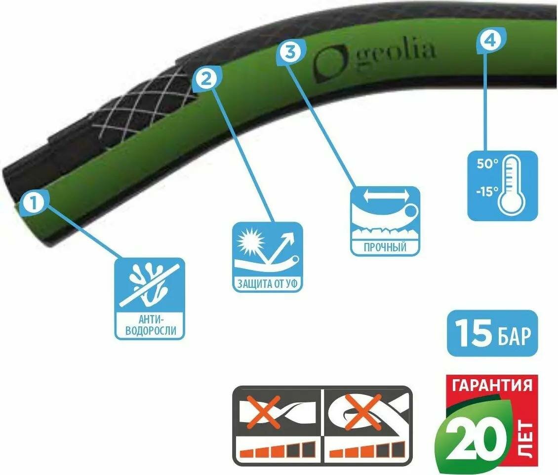 Шланг для полива Geolia Tech 19 мм 25 м, ПВХ